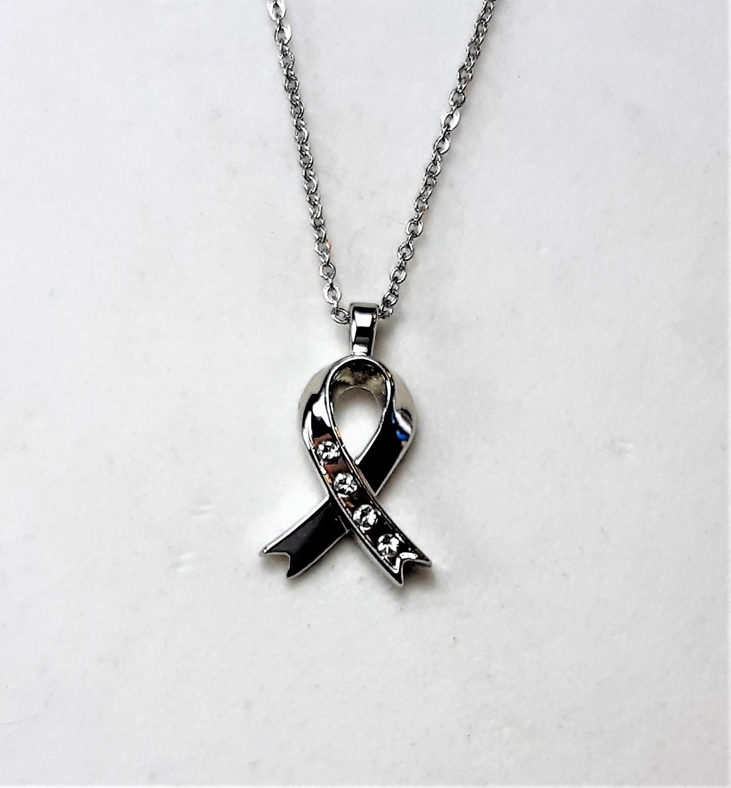 BREAST CANCER RIBBON PENDANT ON CHAIN. JEWELRY