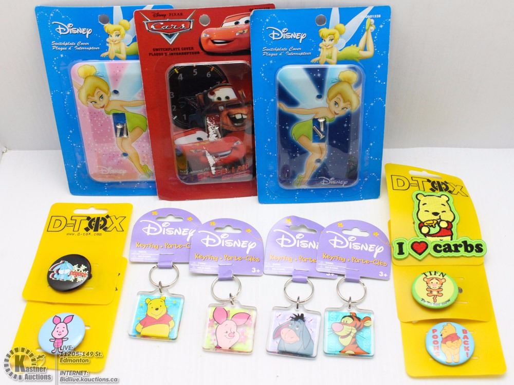 INCLUDING FOUR KEY CHAINS, FOUR PINS, STICKER, AND THREE SWITCH COVERS. ALL NEW.