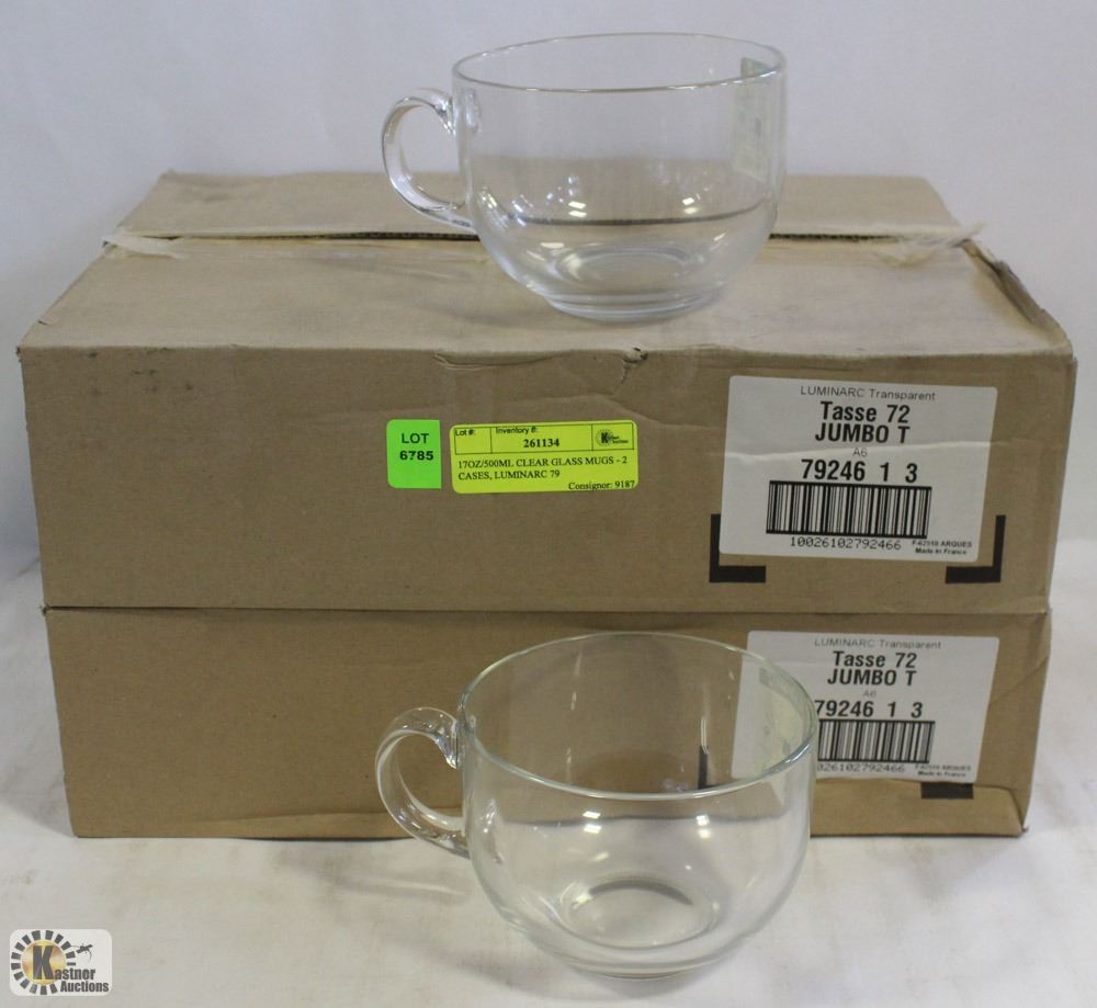 KW191 - NEW 17OZ/500ML CLEAR GLASS MUGS - LOT OF 12 (2 CASES), LUMINARC 79246