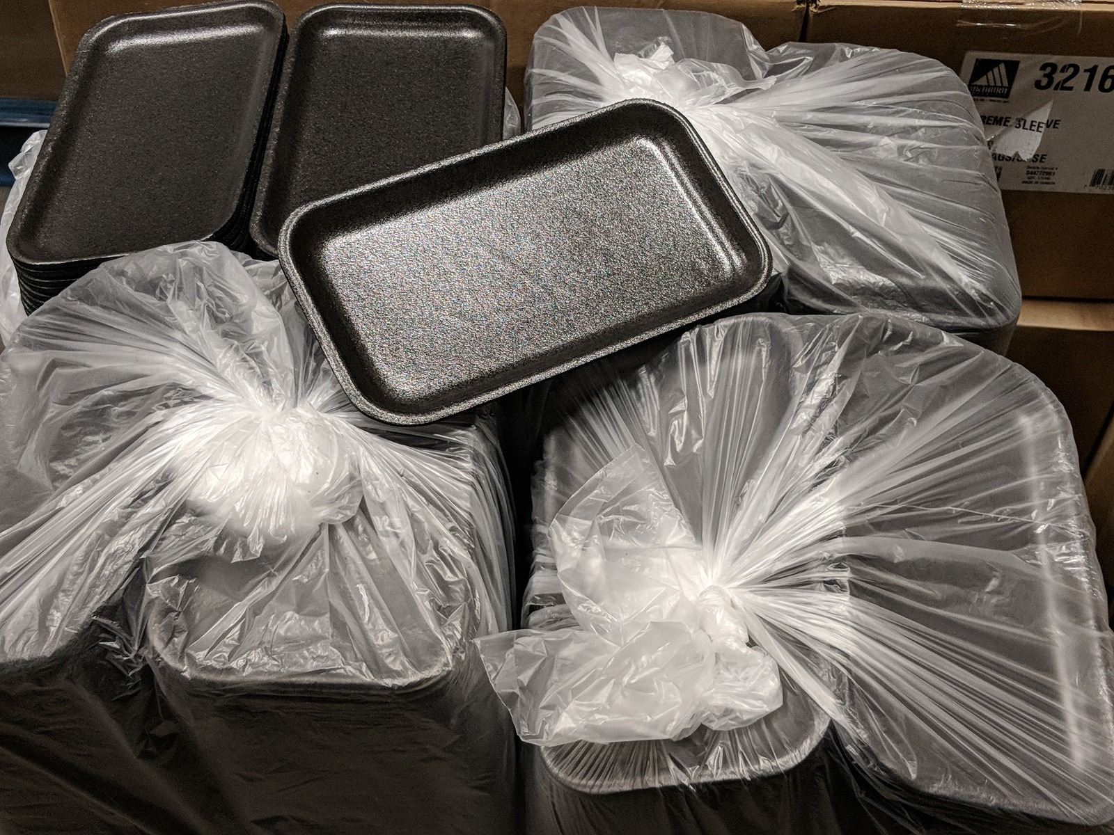 K254-J183 NEW 8.3" X 4.8" FOAM 17S SUPERMARKET TRAY BLACK, PACTIV 17S - LOT OF 1000 (4 SLEEVE MASTER PACK)