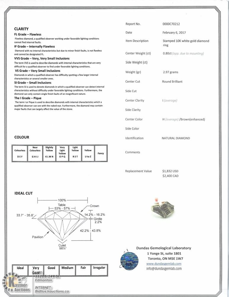 18-NT115- 10K WHITE GOLD DIAMOND (0.80CT) TWIST RING SIZE 4.75 W/COA. SUGGESTED REPLACEMENT VALUE $2400.00. JEWELLERY.