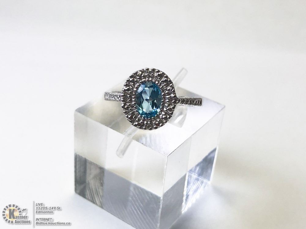10KT WHITE GOLD BLUE TOPAZ (1.00CT) DIAMOND (0.04CT) RING (SIZE 6.75) W/COA. SUGGESTED REPLACEMENT VALUE $2200.00 - 68-LS123. JEWELLERY