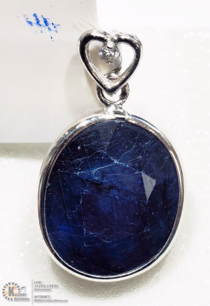18 - MM51- 14K WHITE GOLD BLUE AND WHITE SAPPHIRE (TOTAL 5.00CT) PENDANT (MADE IN CANADA),W/ COA. SUGGESTED REPLACEMENT VALUE $600.00. JEWELLERY.
