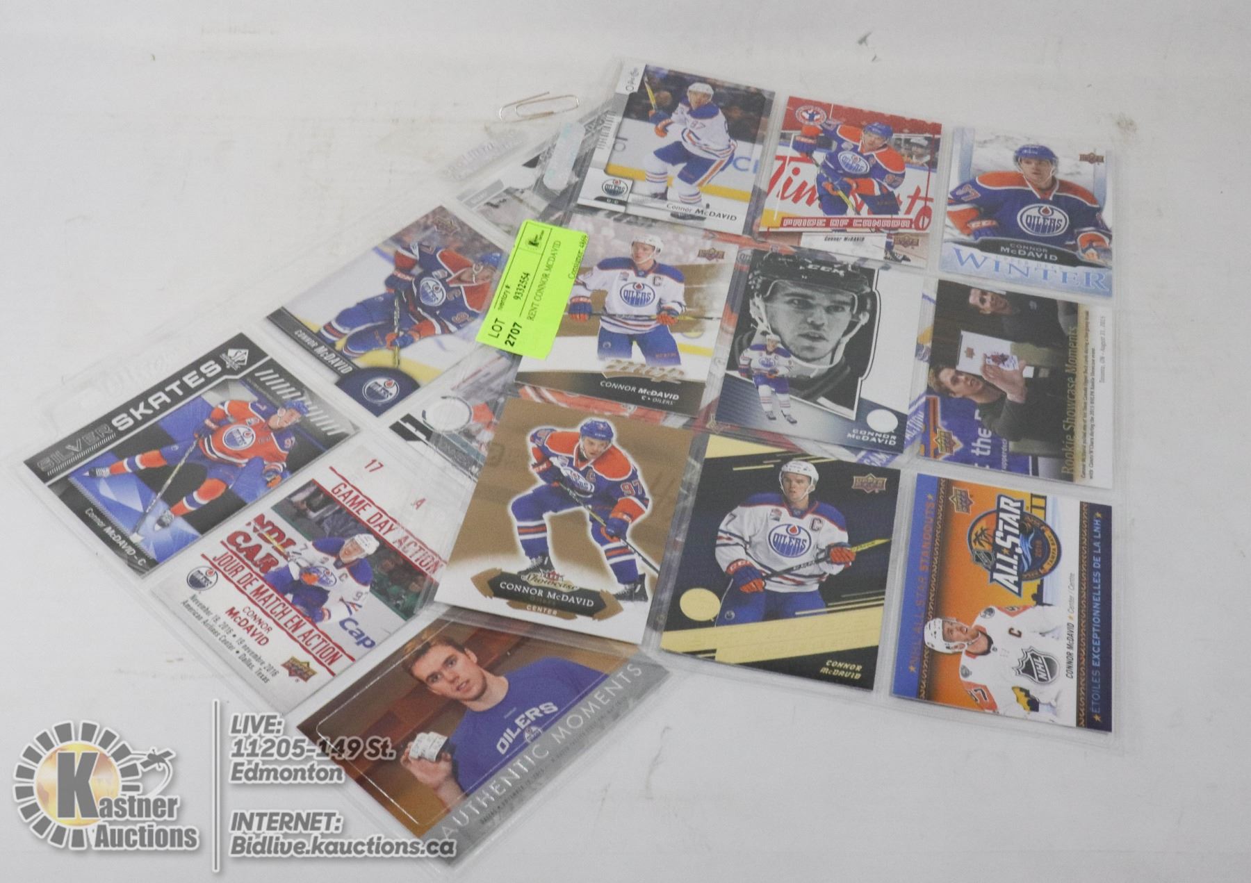 18 DIFFERENT CONNOR MCDAVID CARDS 2 SHEETS, INCLUDING BOTH BASE AND INSERT CARDS- NONE