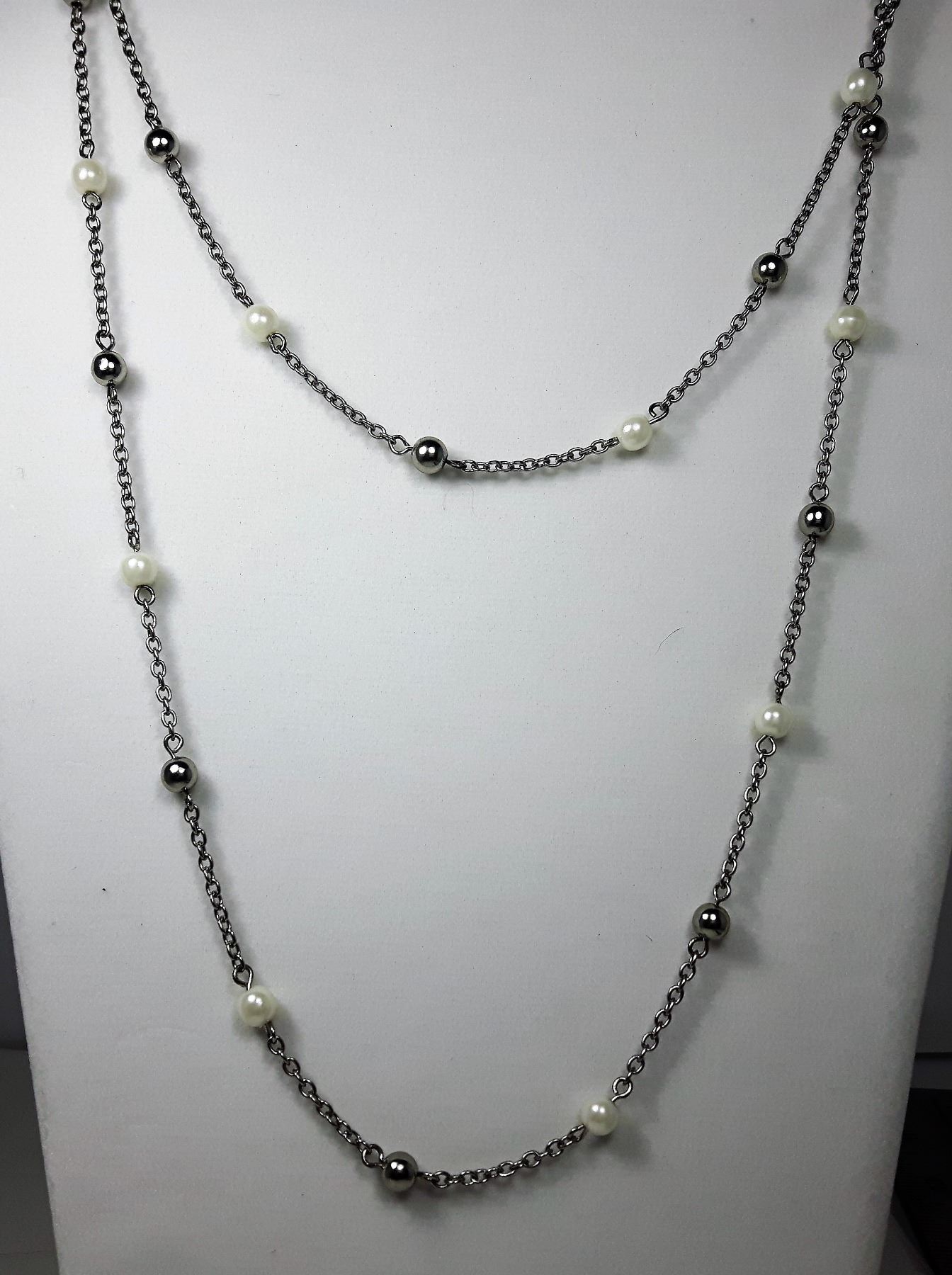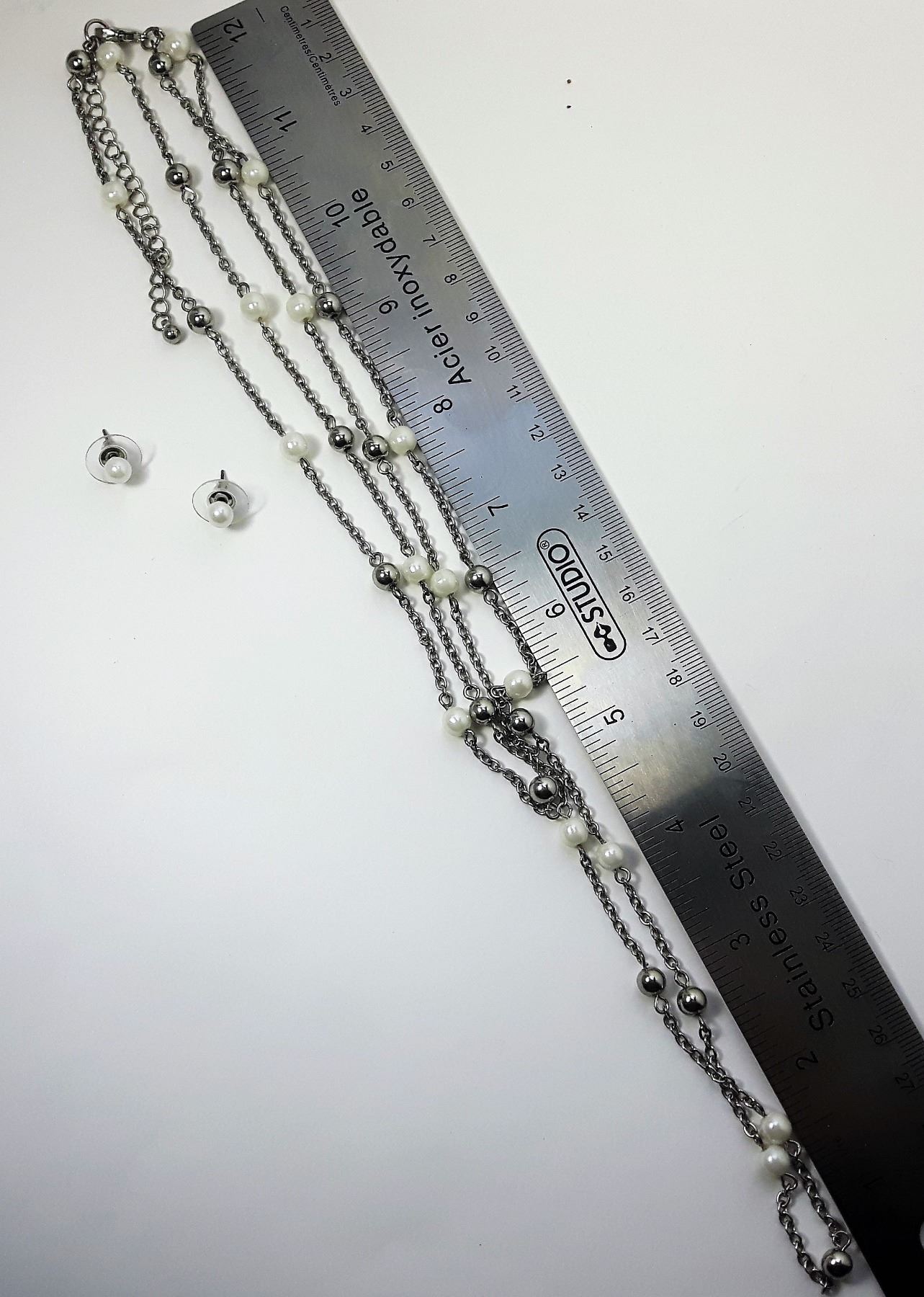 WITH PEARL & SILVER BALL STATIONS & COORDINATING PEARL STUD EARRINGS. JEWELRY