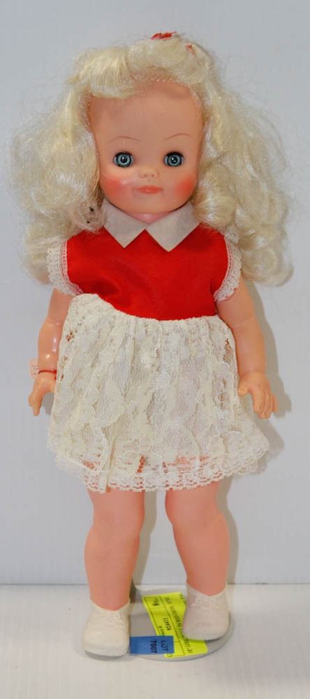 18" GIRL DOLL IN RED DRESS. #5702