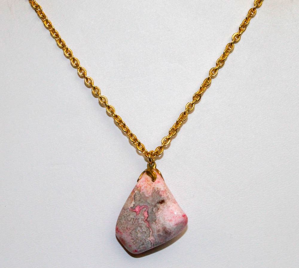 18" GOLD TONE CHAIN WITH PINK STONE PENDANT