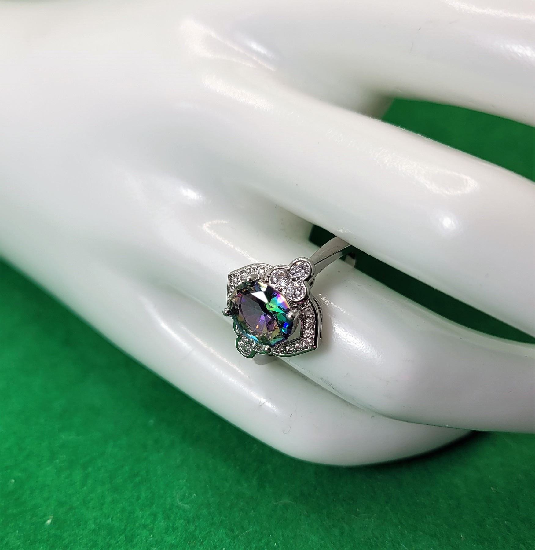 RING WITH CLEAR CZ STONES FORMING A HALO, SIZE 8.