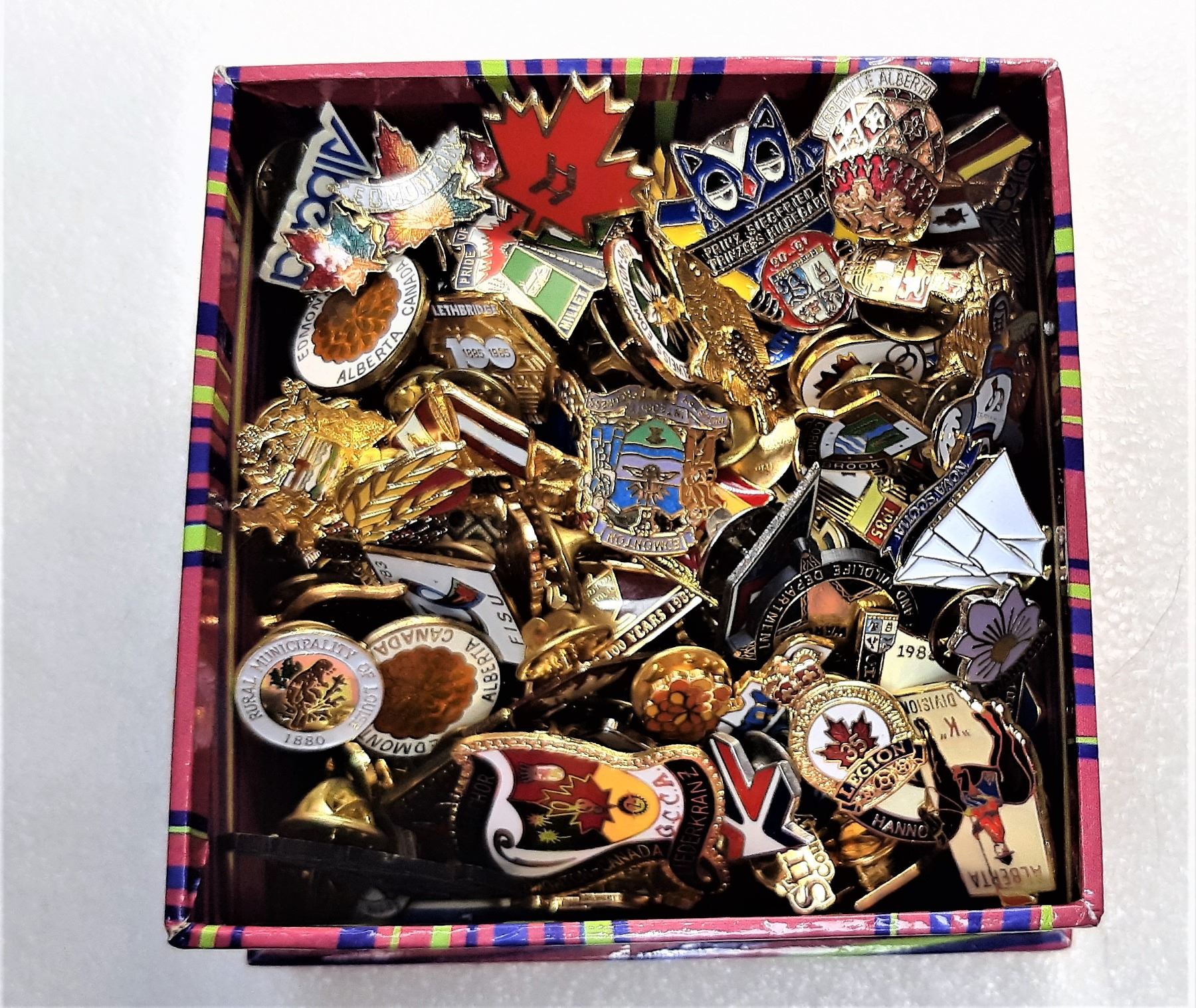 18) LOT OF 150 LAPEL PINS INCLUDING FLAGS,