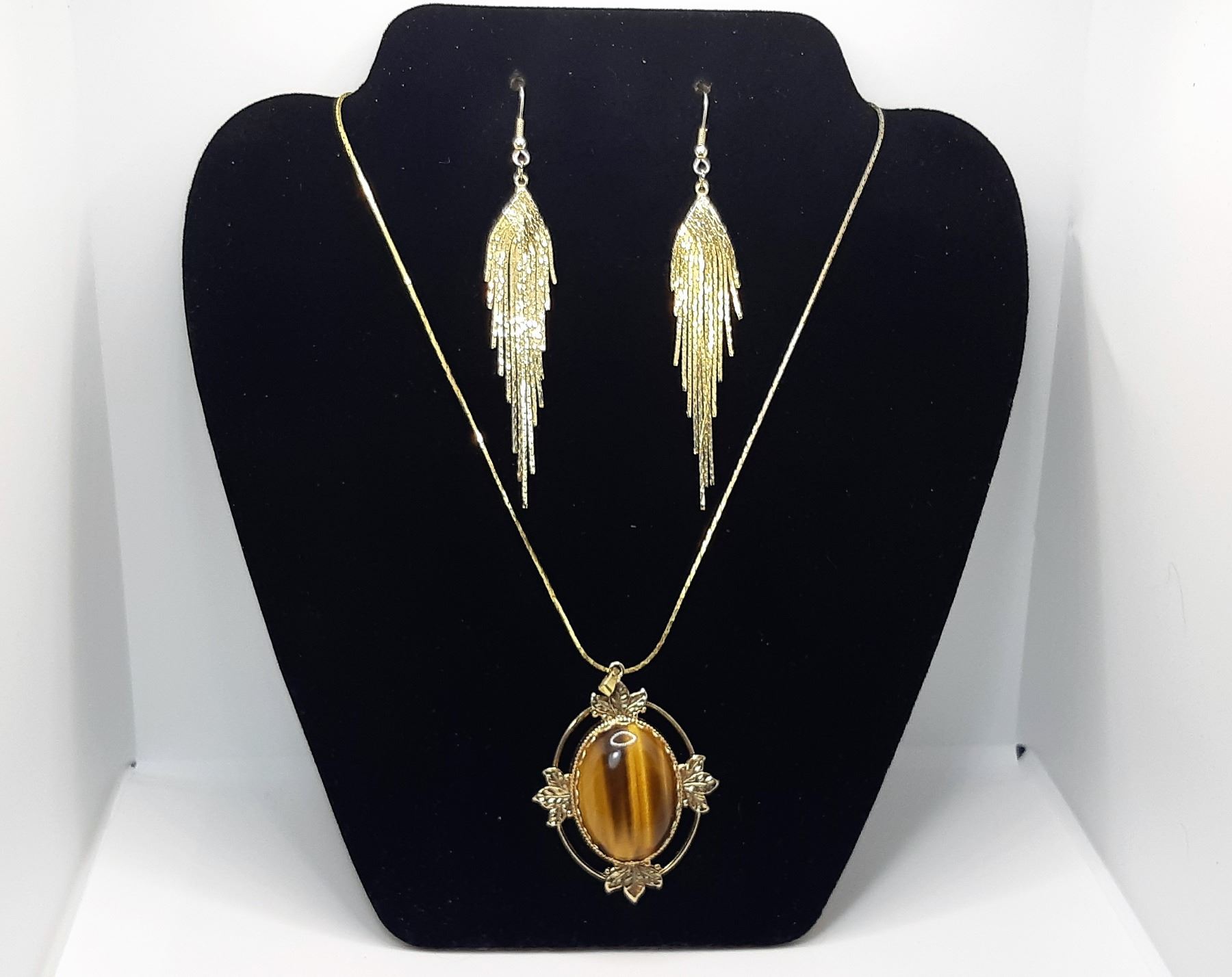 20" GOLD TONE FLAT HERRINGBONE CHAIN AND MULTI CHAIN EARRINGS ON FISHHOOK WIRES. JEWELRY