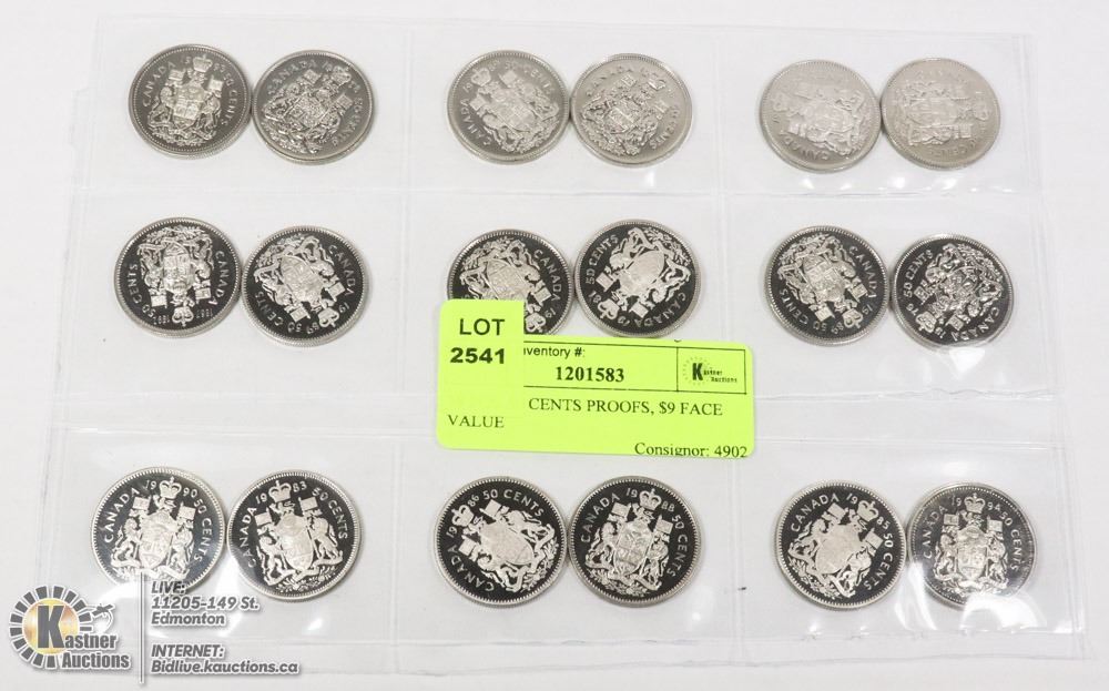 18 PCS. 50 CENTS PROOFS, $9 FACE VALUE