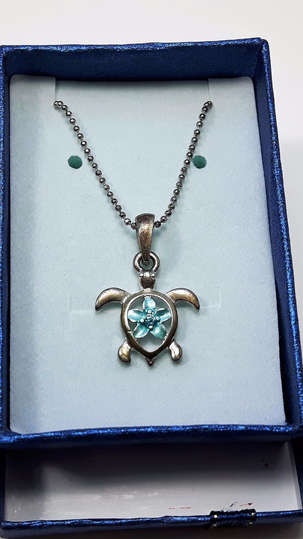 CENTRE OF TURTLE HAS A BLUE ENAMEL FLOWER WITH CRYSTAL ACCENT