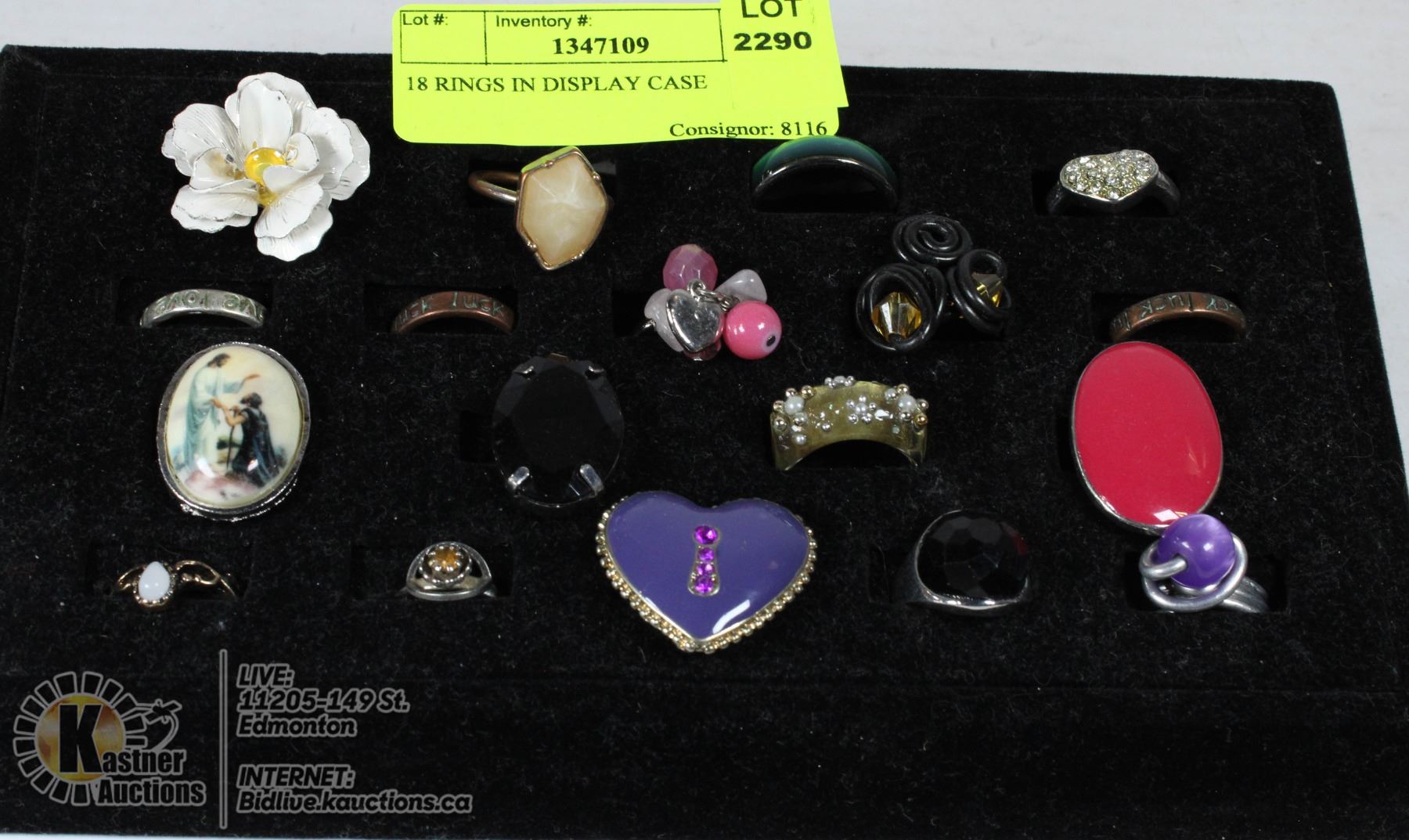 18 RINGS IN DISPLAY CASE