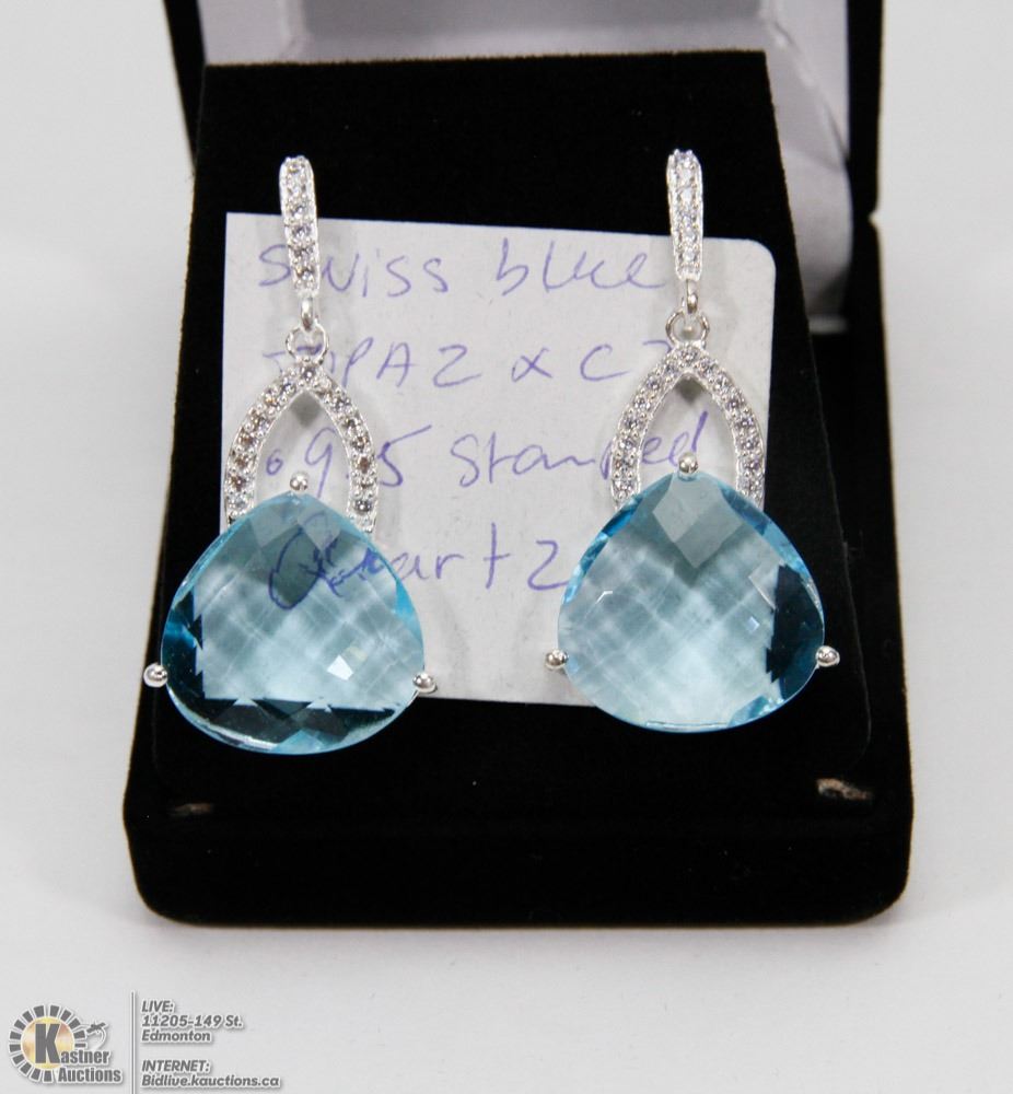 #18-SWISS BLUE TOPAZ & CZ GEMSTONE EARRINGS