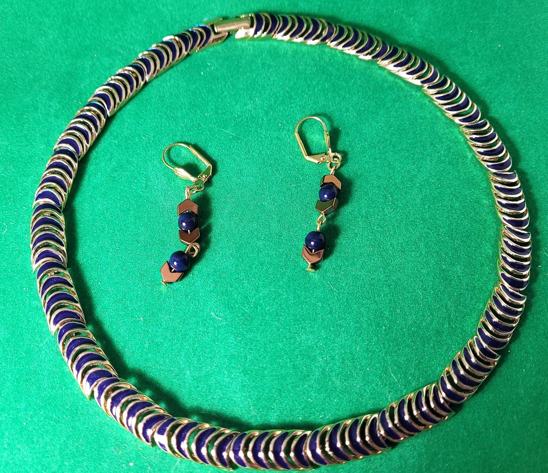 BLUE ENAMEL 17" NECKLACE AND COORDINATING DROP EARRINGS ON NICKLE FREE LEVER BACK WIRES.***ITEM(S) LOCATED IN LETHBRIDGE ALBERTA