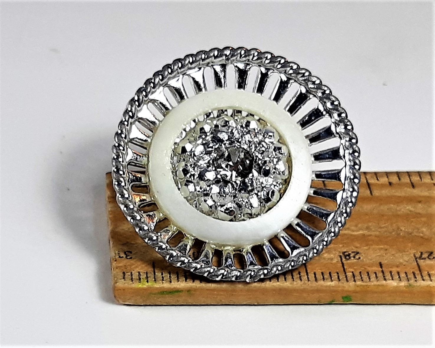 CLEAR CRYSTAL & MOTHER OF PEARL BROOCH MEASURING 1.25" IN DIAMETER. JEWELLERY