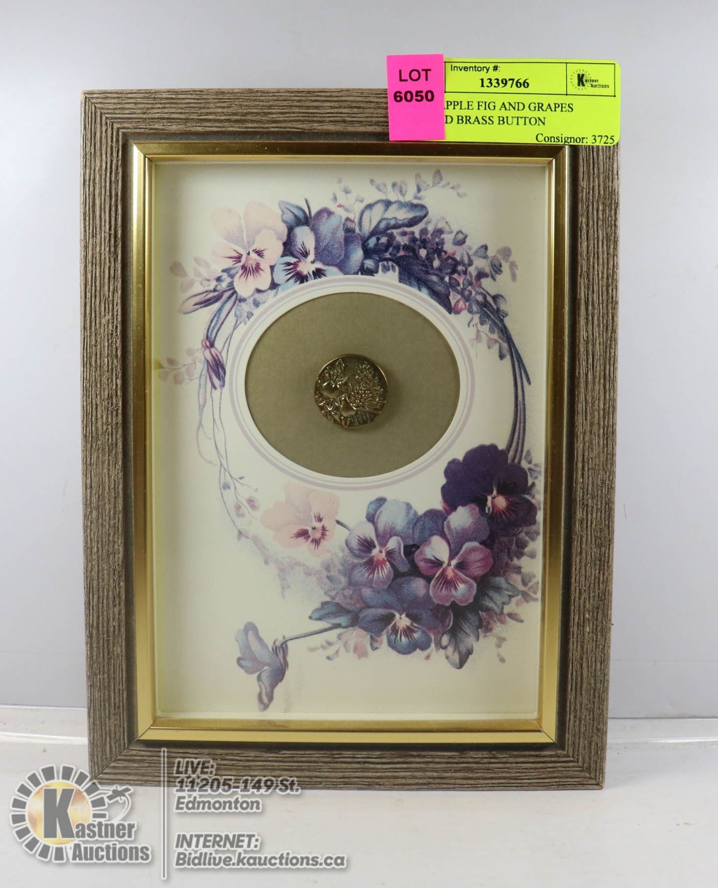 1800S APPLE FIG AND GRAPES FRAMED BRASS BUTTON