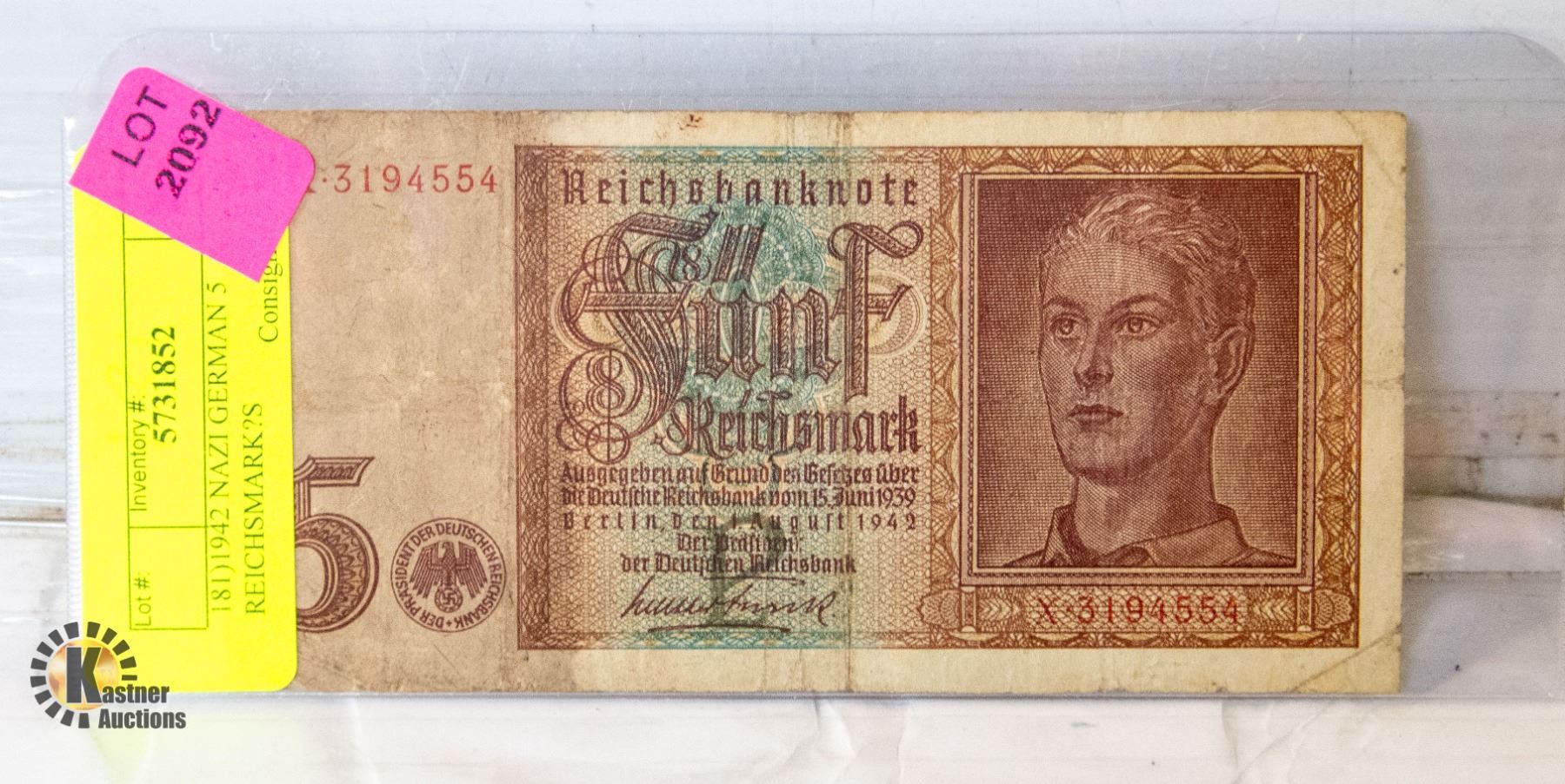 181)1942 NAZI GERMAN 5 REICHSMARK?S