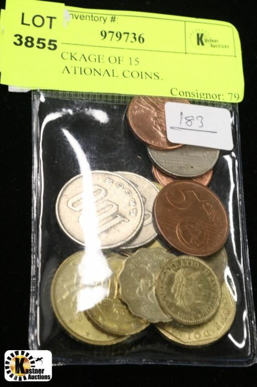 #183-PACKAGE OF 15 INTERNATIONAL COINS.