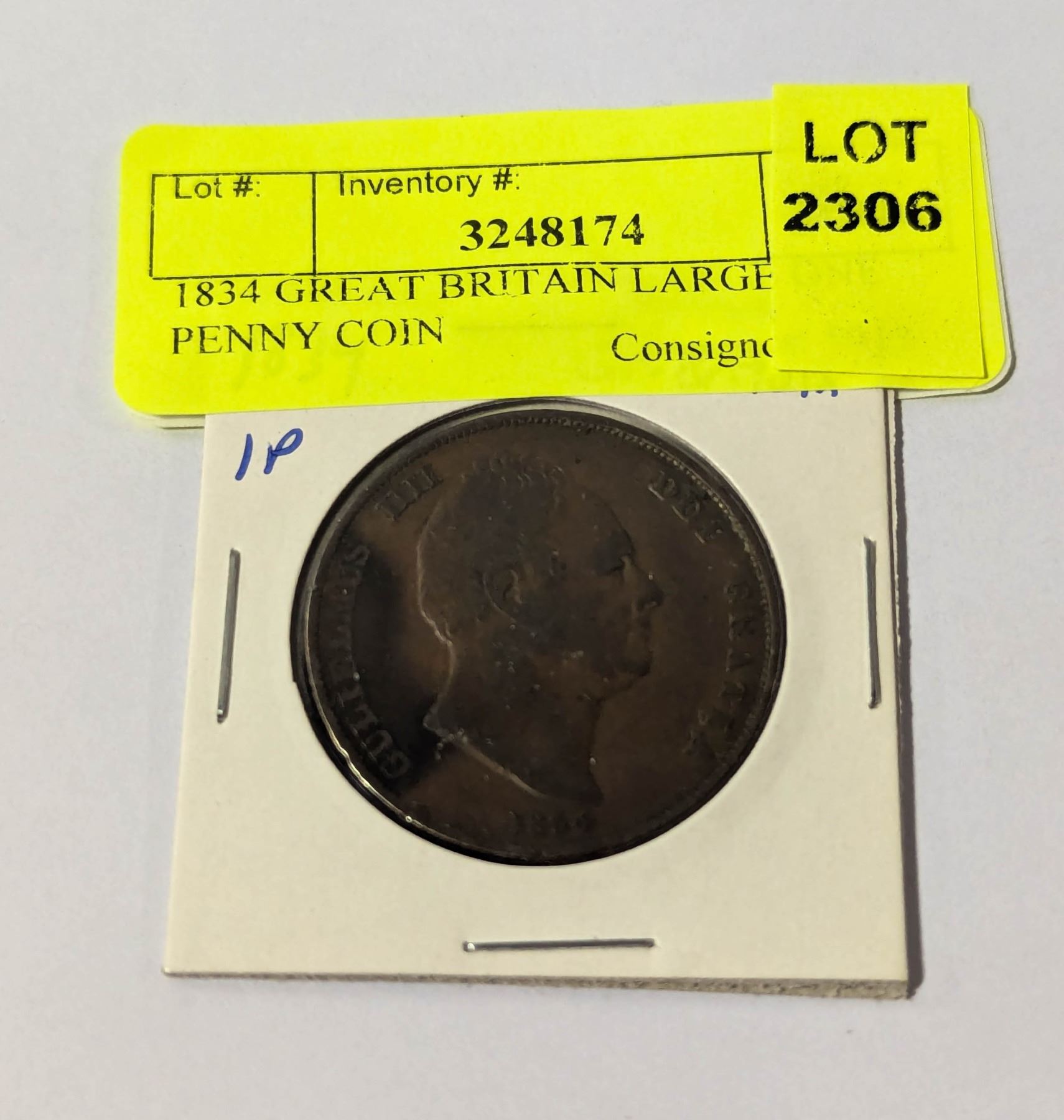 1834 GREAT BRITAIN LARGE ONE PENNY COIN
