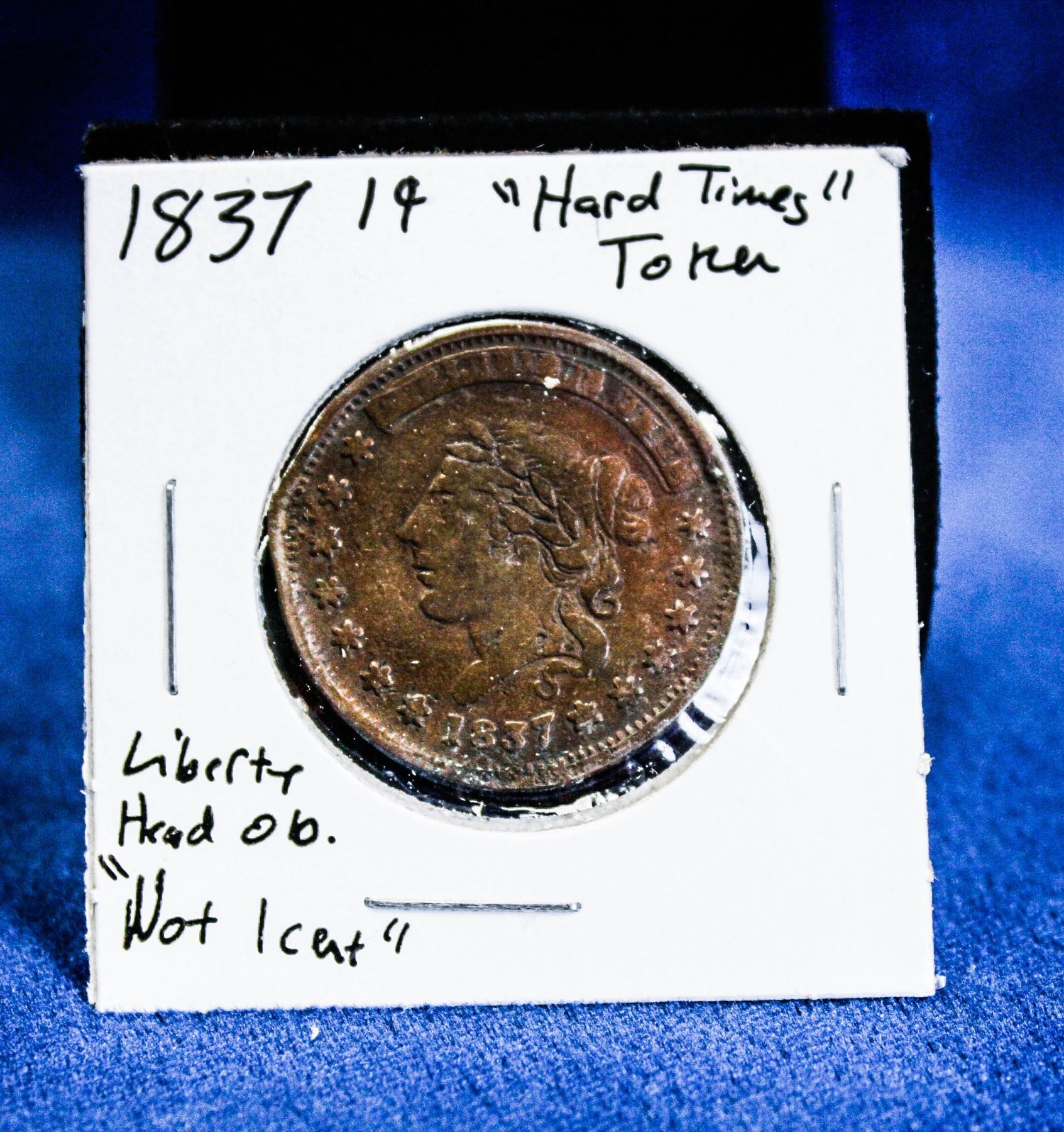 1837 USA "HARD TIMES" 1 CENT COIN "NOT 1 CENT"