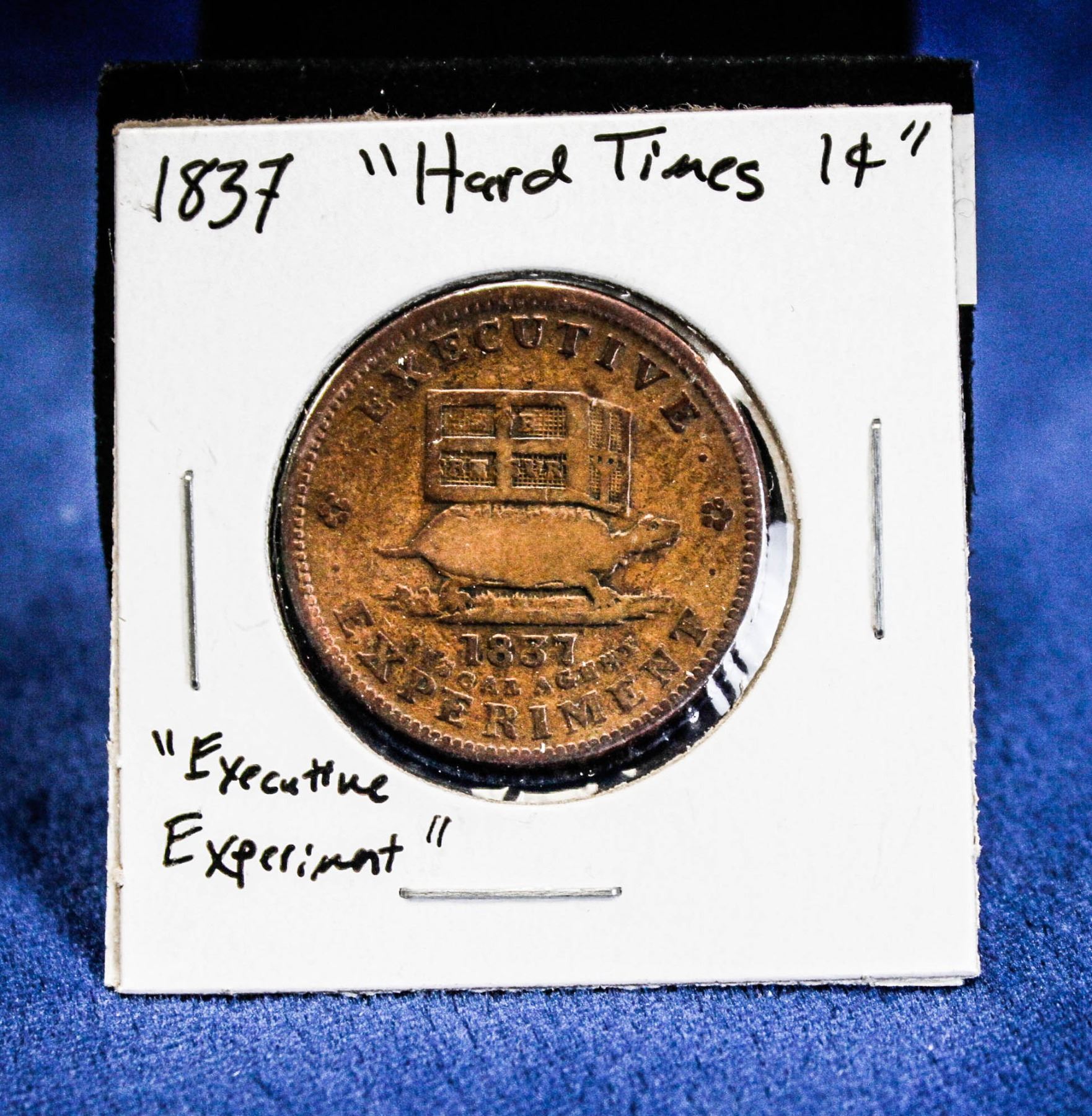 1837 USA "HARD TIMES" 1 CENT "EXECUTIVE EXPERIM