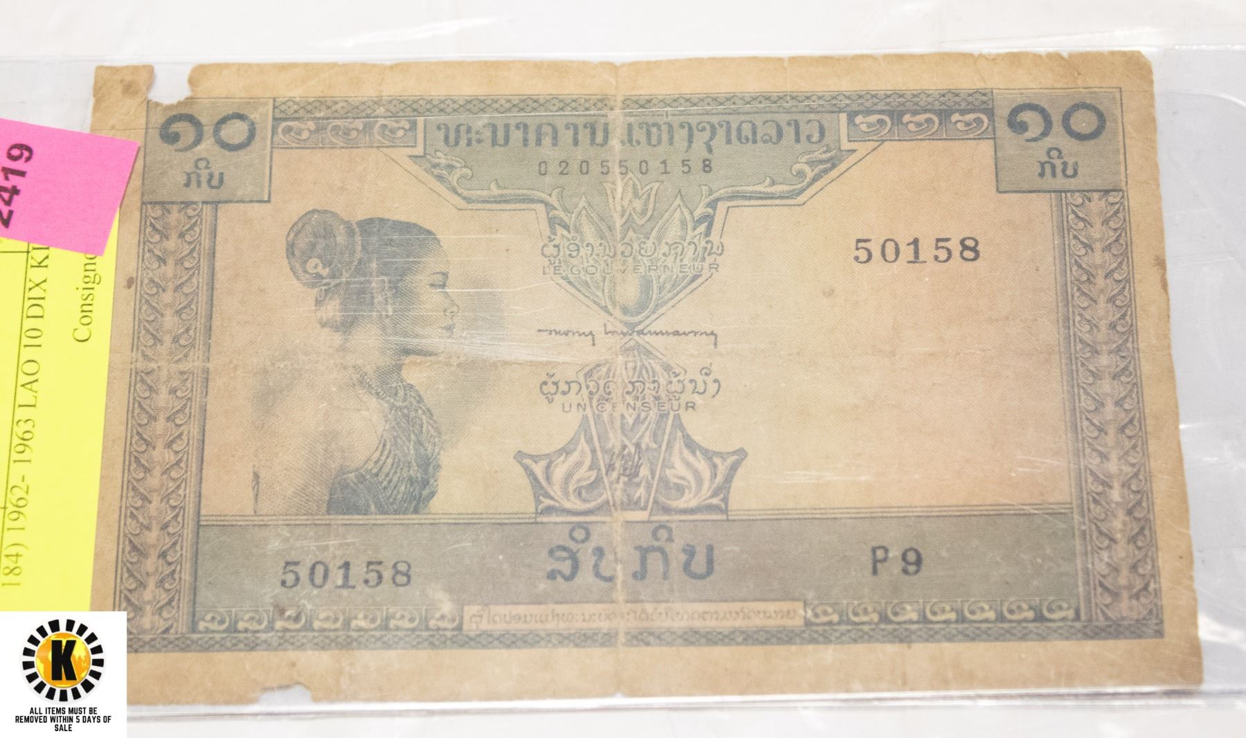 184) 1962- 1963 LAO 10 DIX KIP NOTE