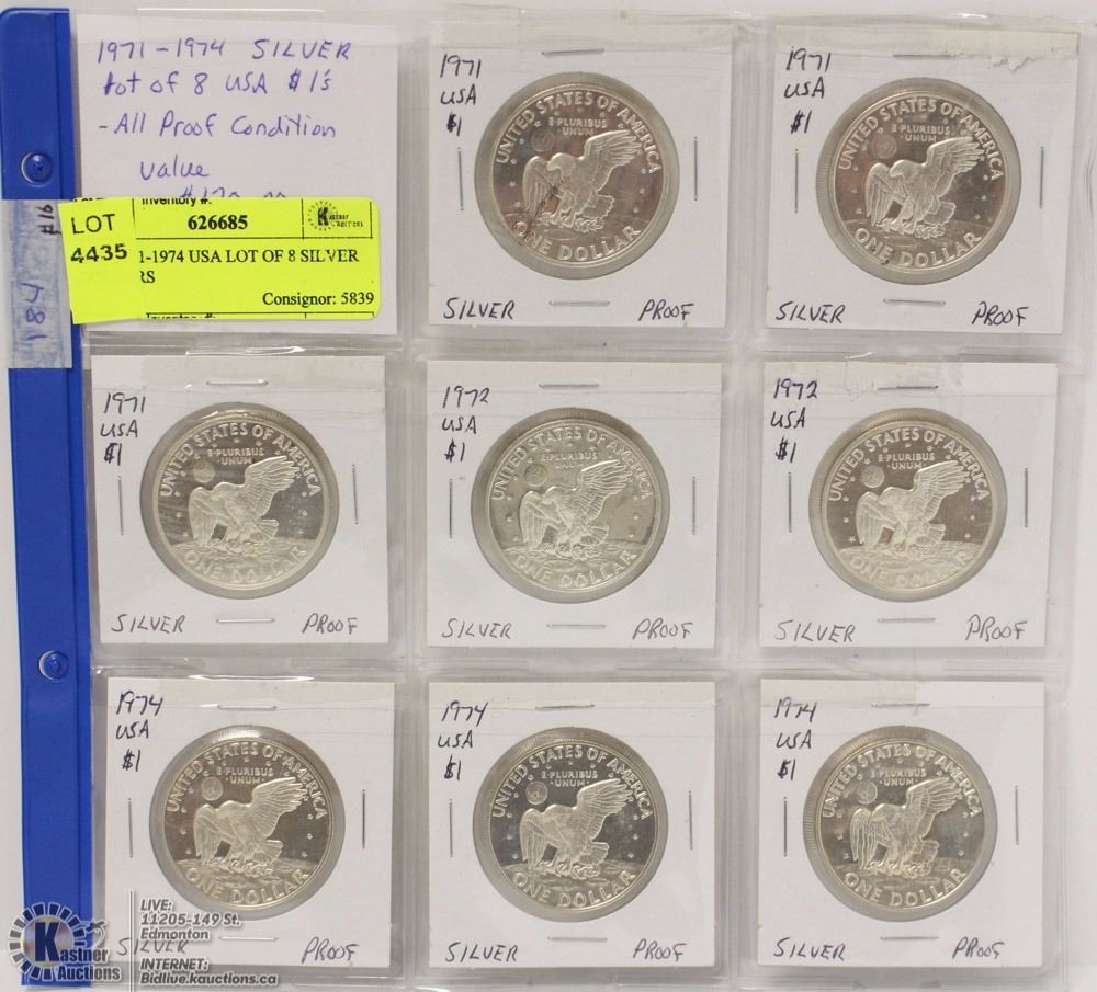 184) 1971-1974 USA LOT OF 8 SILVER DOLLARS