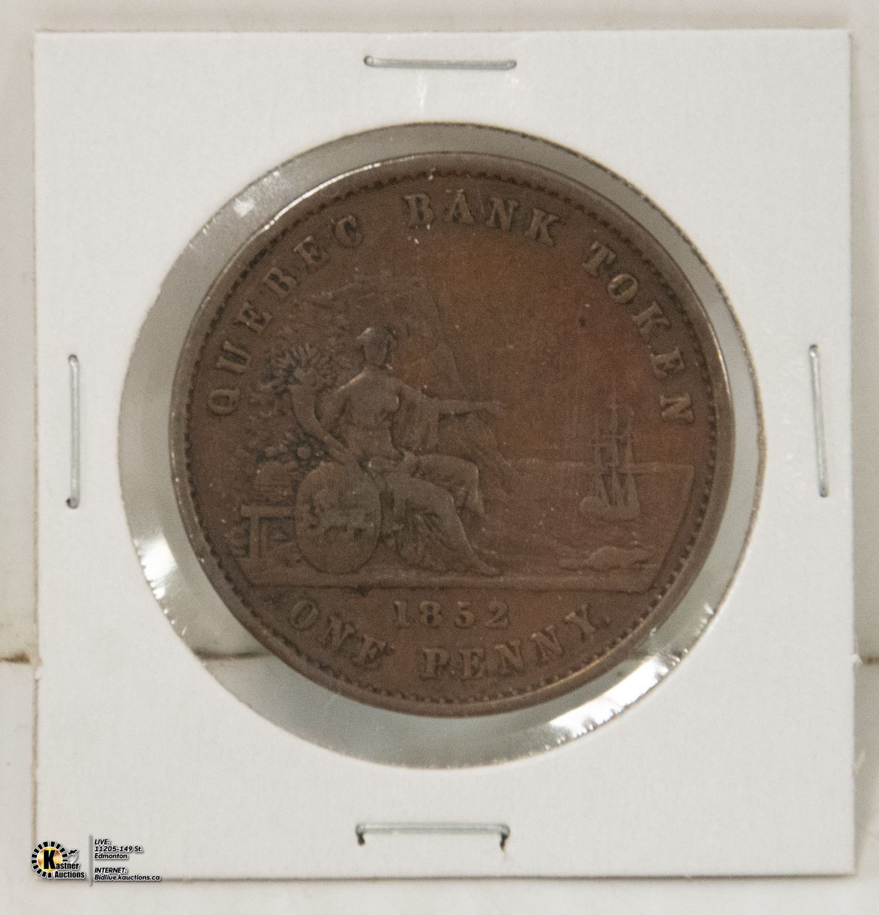1852 QUEBEC BANK ONE PENNY TOKEN
