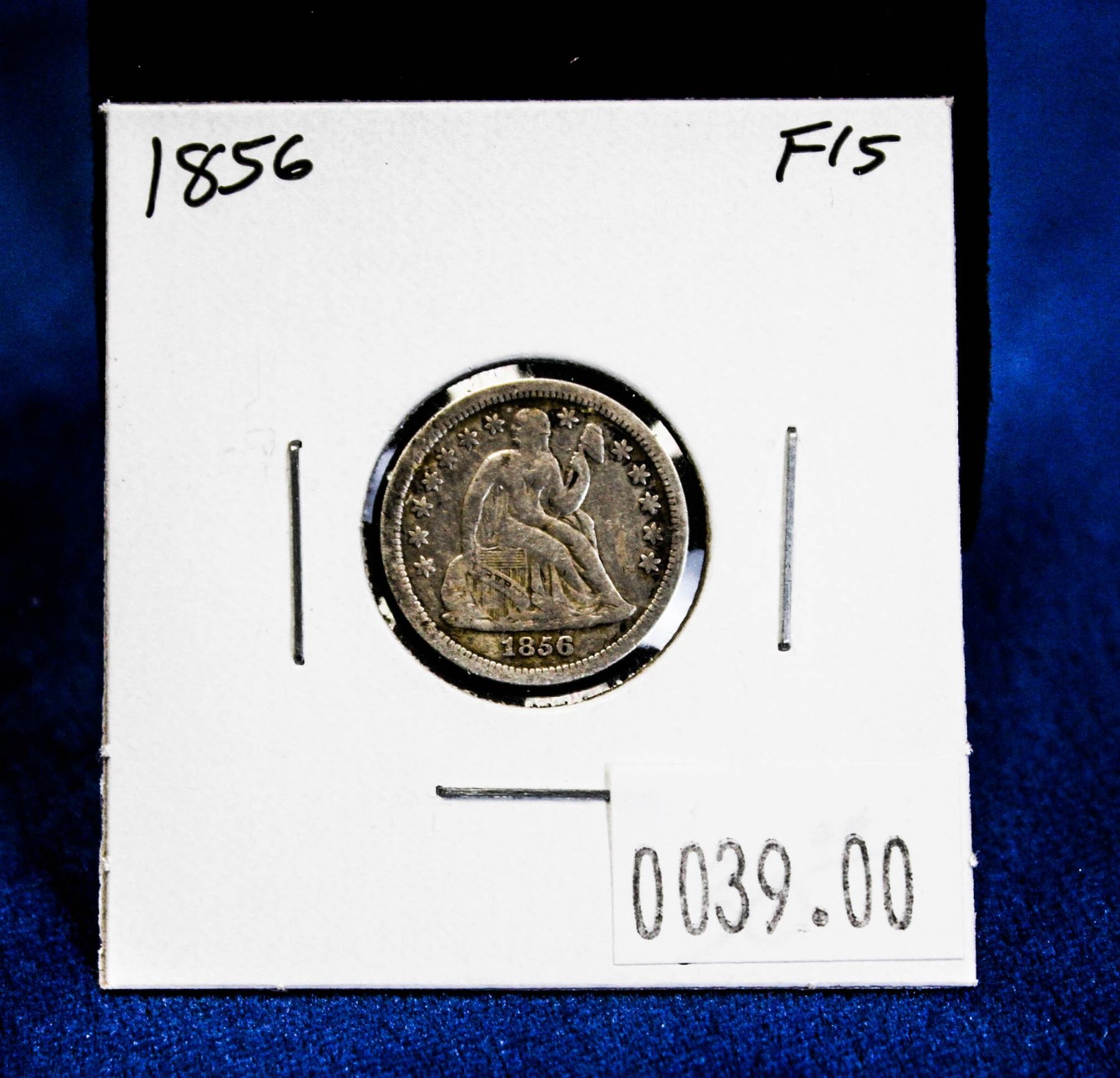 1856 USA SEATED LIBERTY SILVER DIME. SMALL DATE