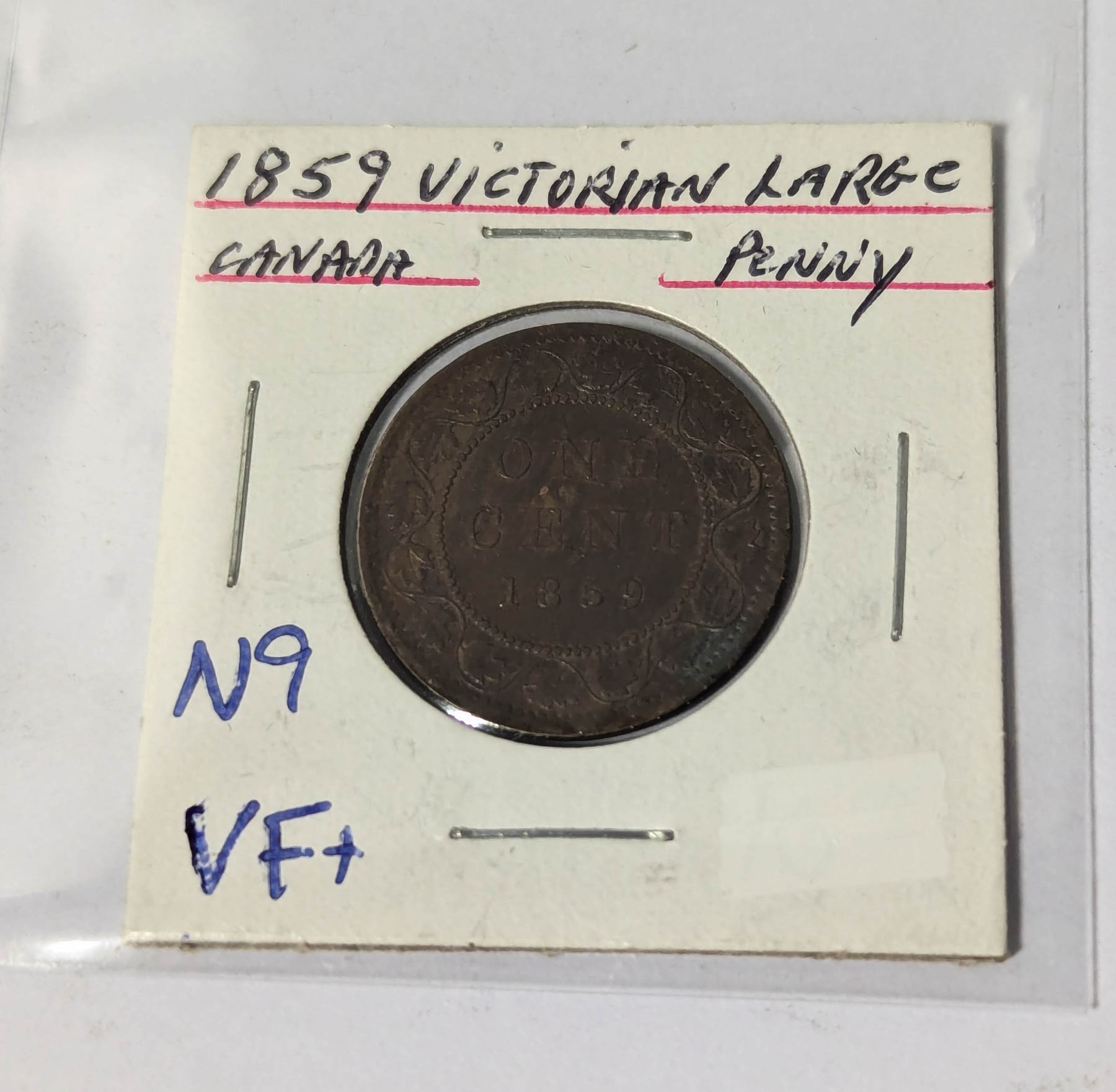 1859 N9 VARIETY CANADA LARGE 1 CENT COIN
