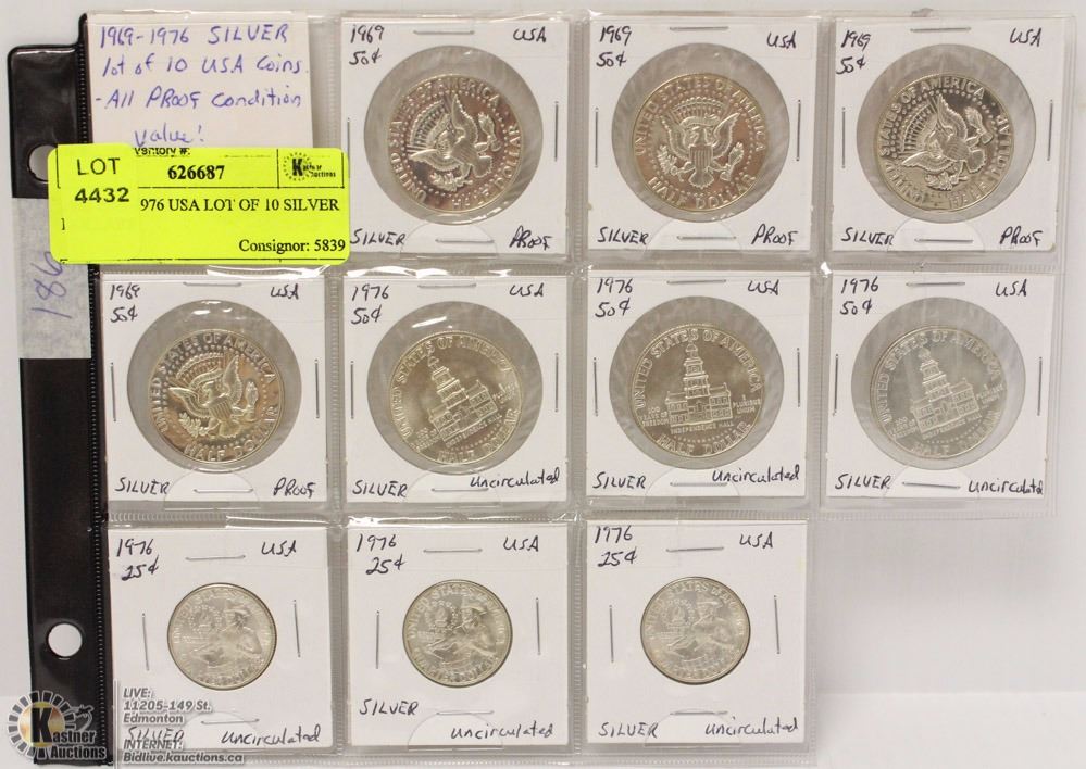 186) 1969-1976 USA LOT OF 10 SILVER DOLLARS