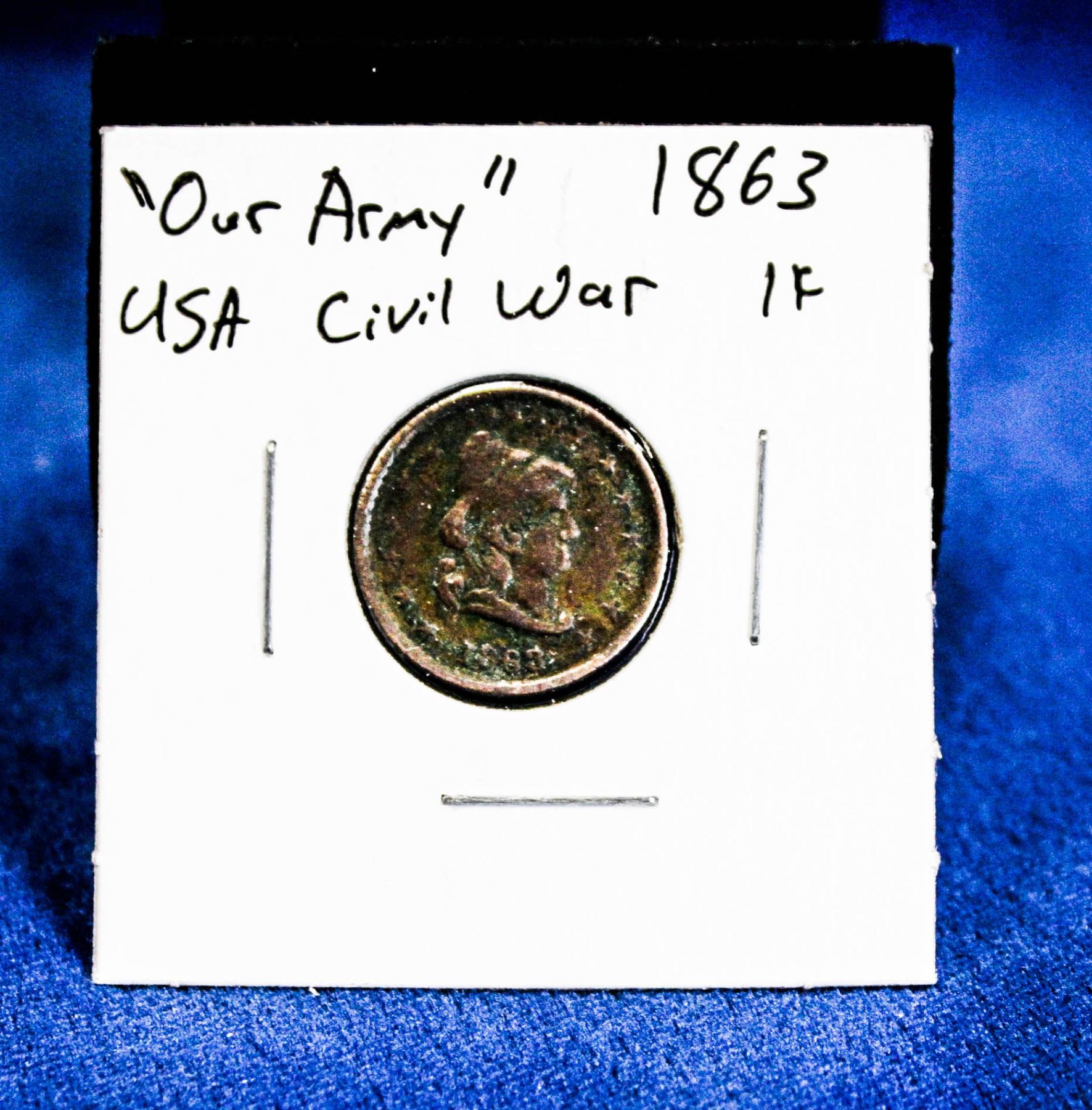 1863 USA CIVIL WAR 1 CENT "OUR ARMY" ISSUE