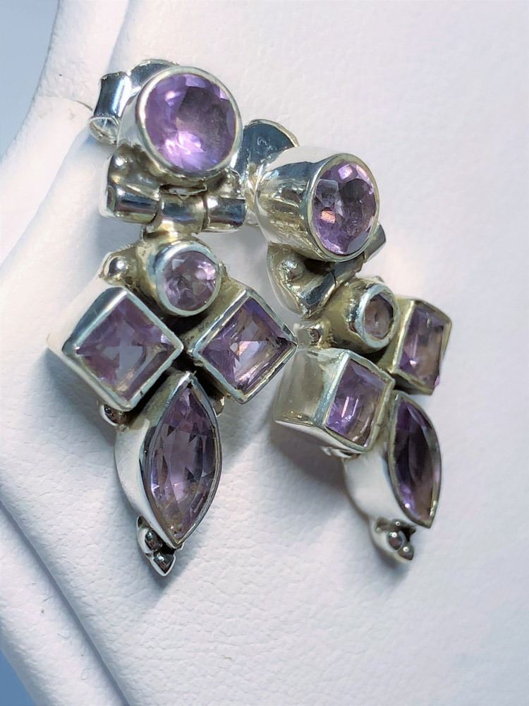 187 - JM37 - STERLING SILVER AMETHYST EARRINGS. JEWELRY