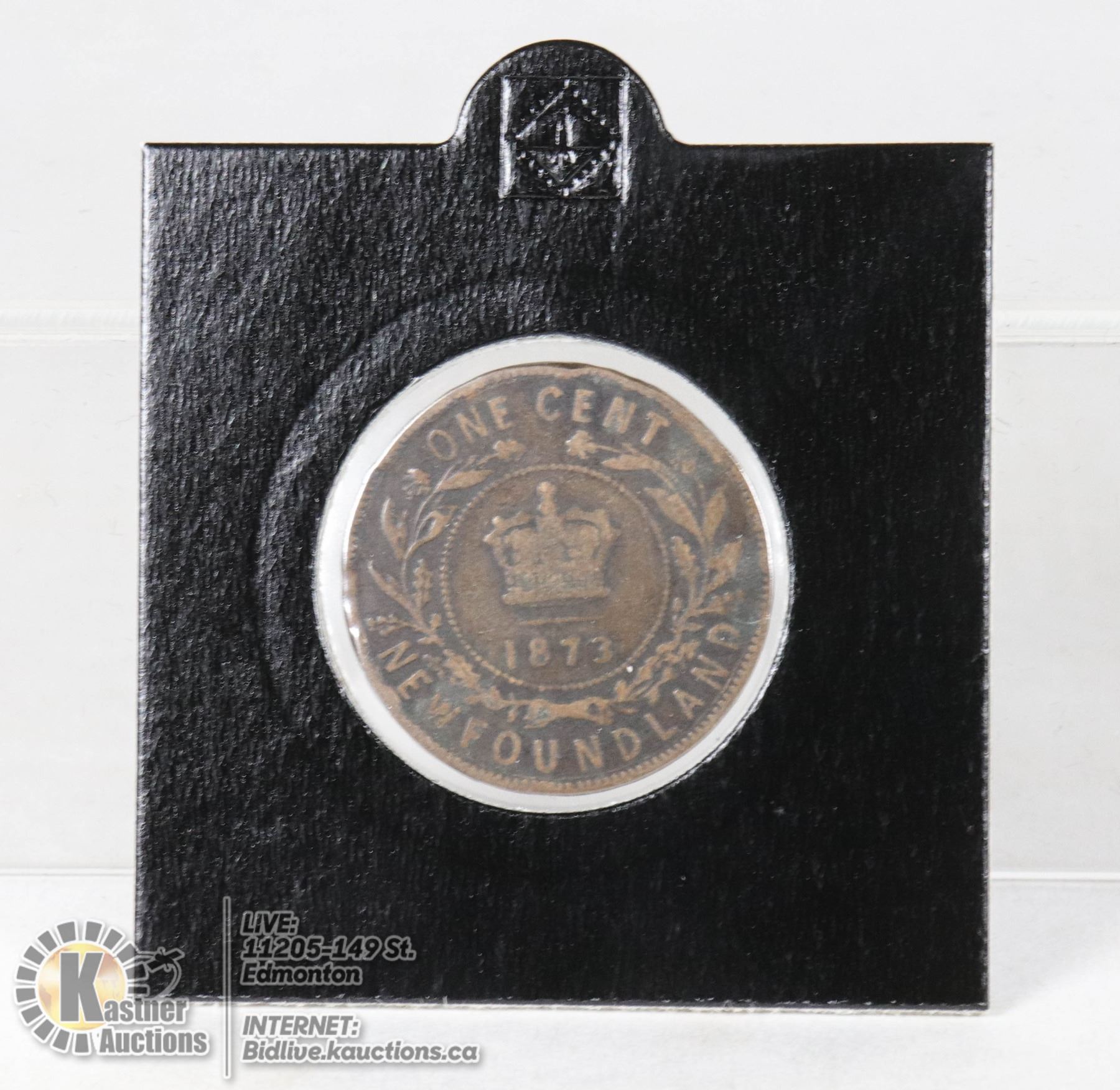 EARLY NEWFOUNDLAND ISSUED LARGE CENT WITH QUEEN VICTORIA ON OBVERSE. NICE DARK ORIGINAL TONE WITH GOOD DETAIL