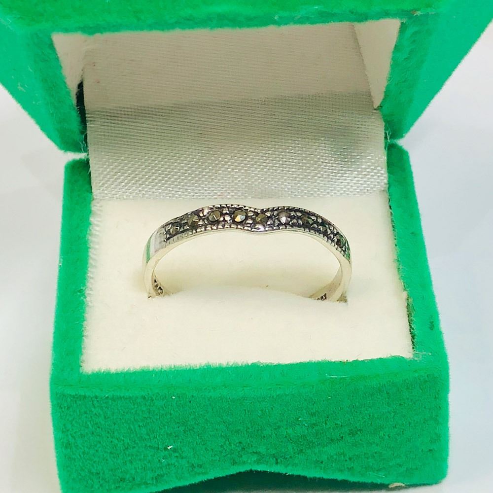 188 - JT53 - STERLING SILVER MARCASITE RING (SIZE 6.5). JEWELRY