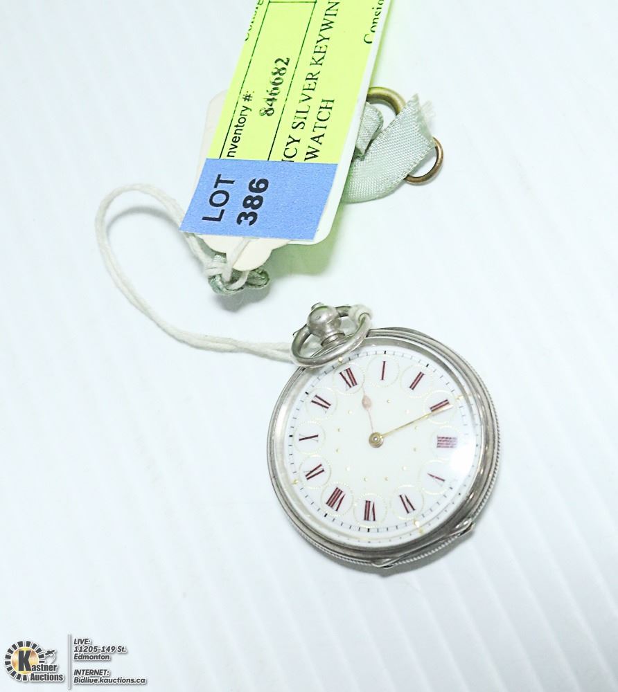 1880 FANCY SILVER KEYWIND POCKET WATCH