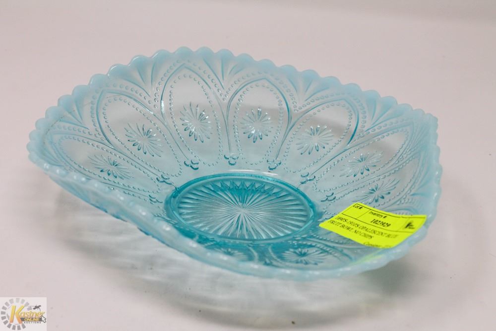 1890'S-1910'S OPALESCENT BLUE FRUIT BOWL NO CHIPS