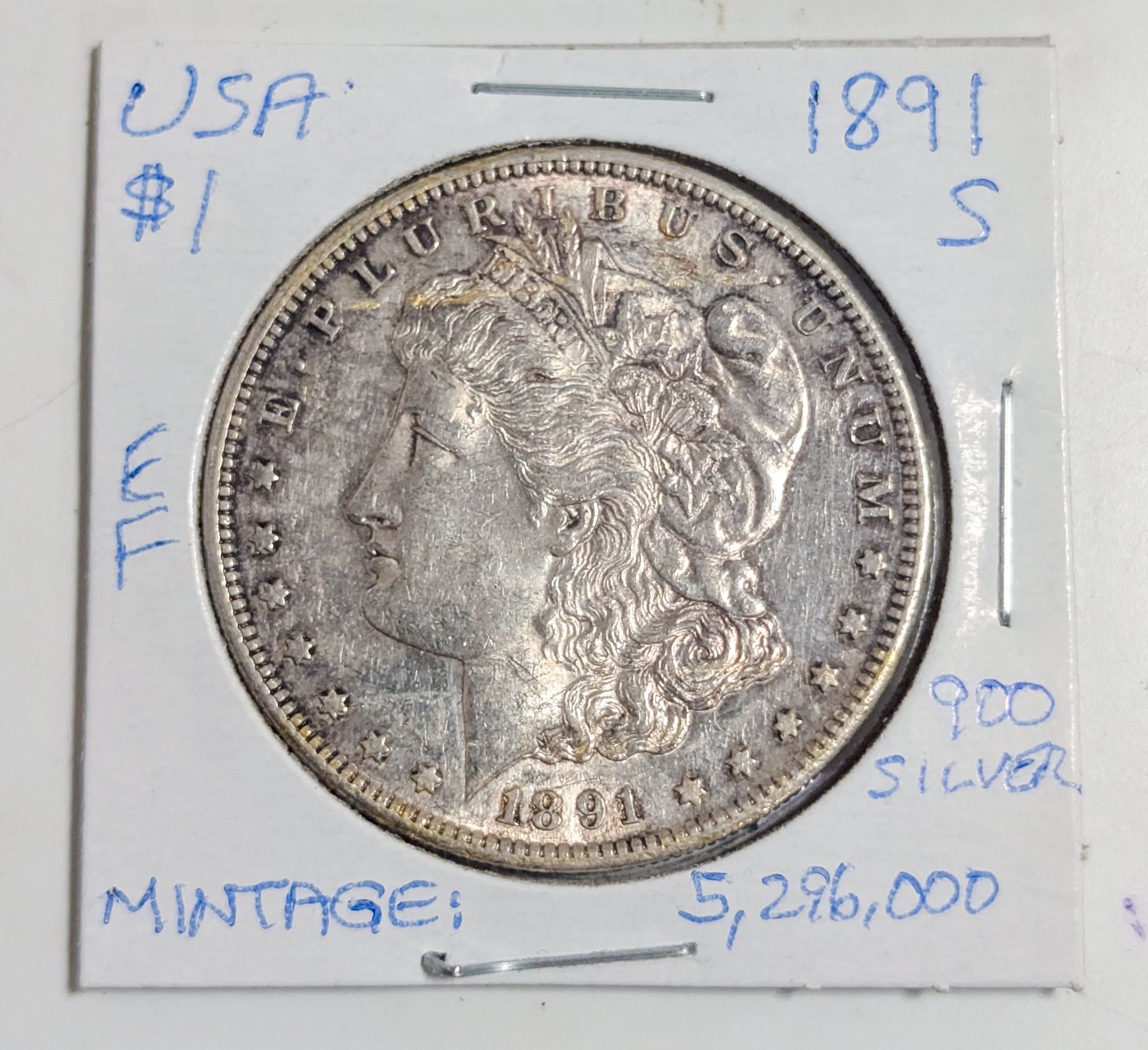 1891 S MORGAN SILVER DOLLAR 900 SILVER