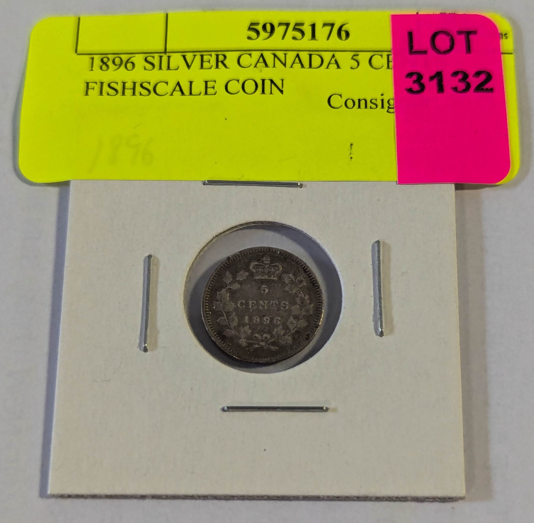 1896 SILVER CANADA 5 CENTS FISHSCALE COIN
