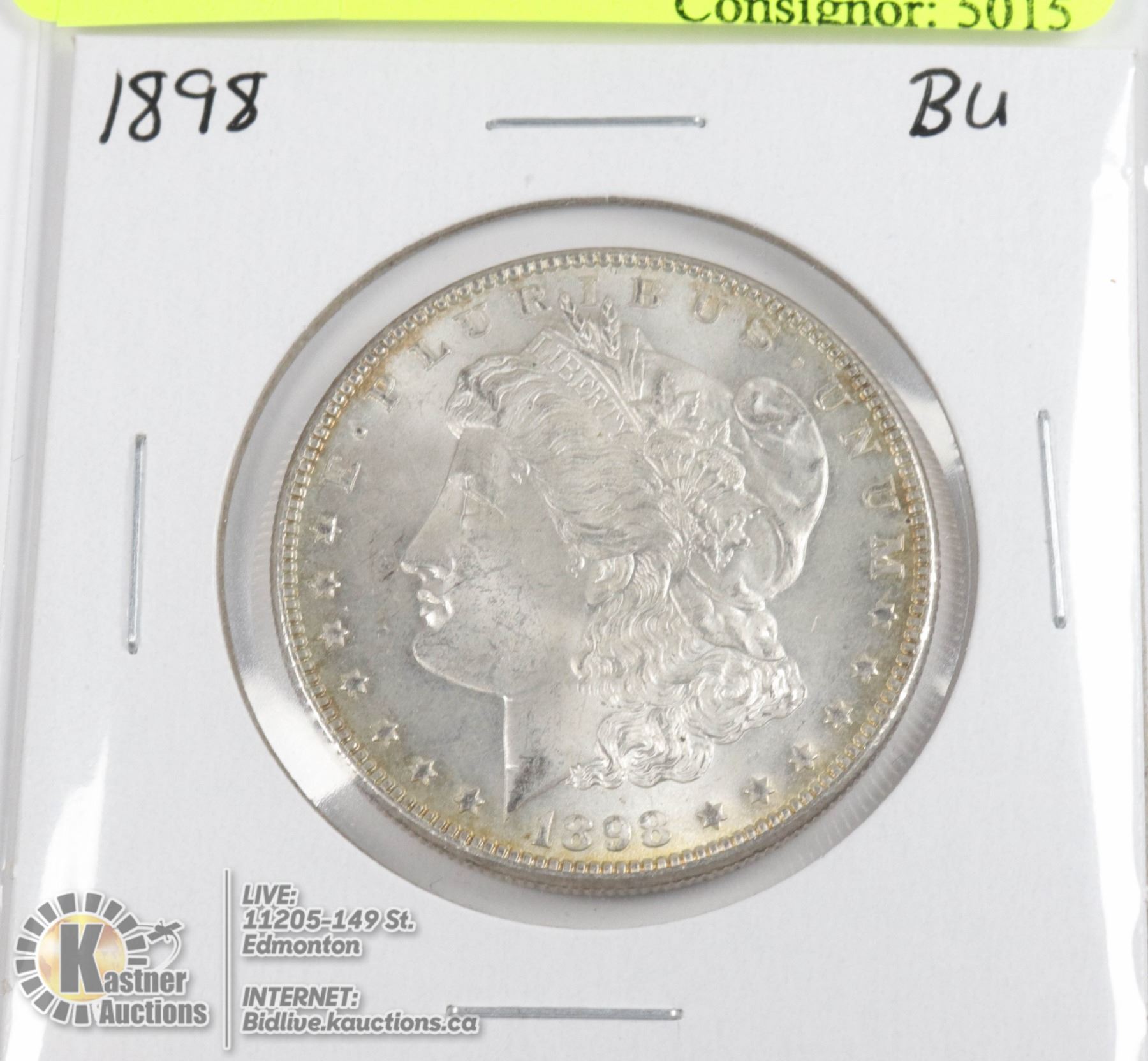 1898 SILVER USA MORGAN $1 DOLLAR COIN, HIGH GRADE