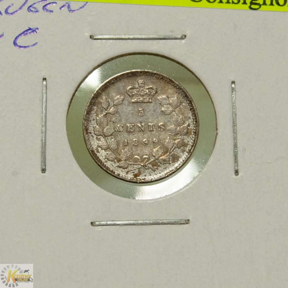 1899 CANADIAN QUEEN VICTORIA SILVER 5 CENT COIN