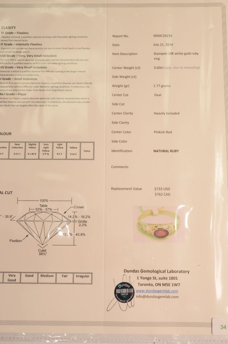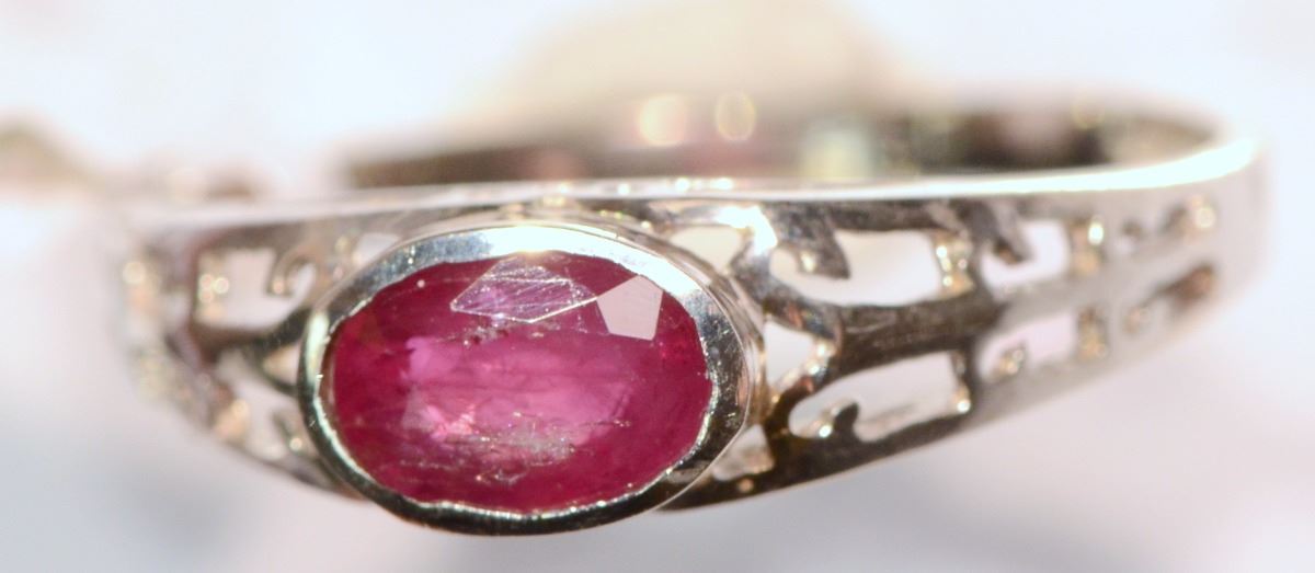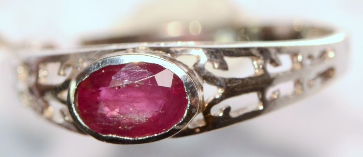 WHITE GOLD RING WITH A OVAL RUBY (0.6CT) BEZEL SET IN AN ANTIQUE DESIGN - SUGGESTED REPLACEMENT VALUE $762.00