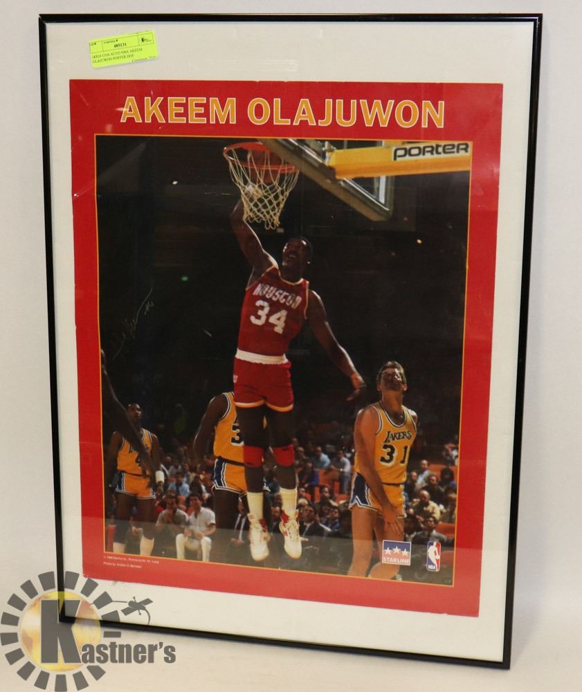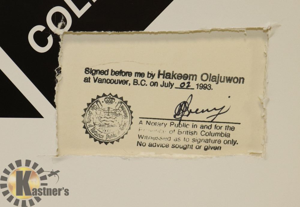 18X24 COA AUTO NBA AKEEM OLAJUWON POSTER HOF