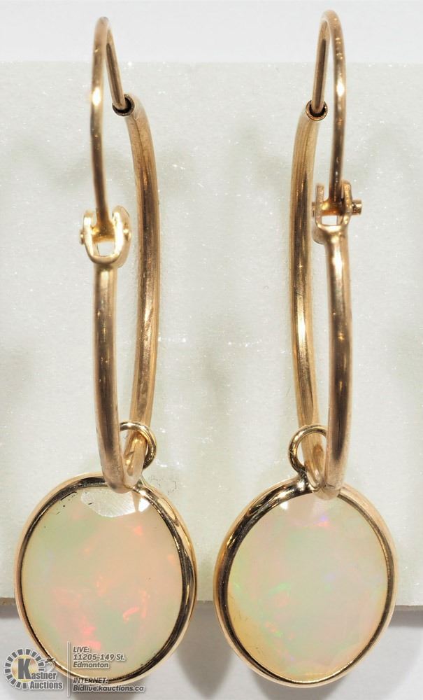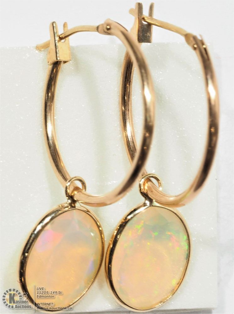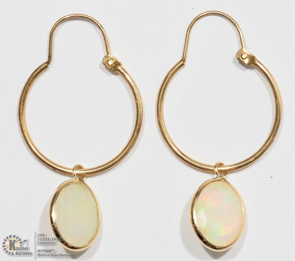 19 - GS91 - 10KT YELLOW GOLD OPAL (3.30CT) HOOP EARRINGS. JEWELLERY