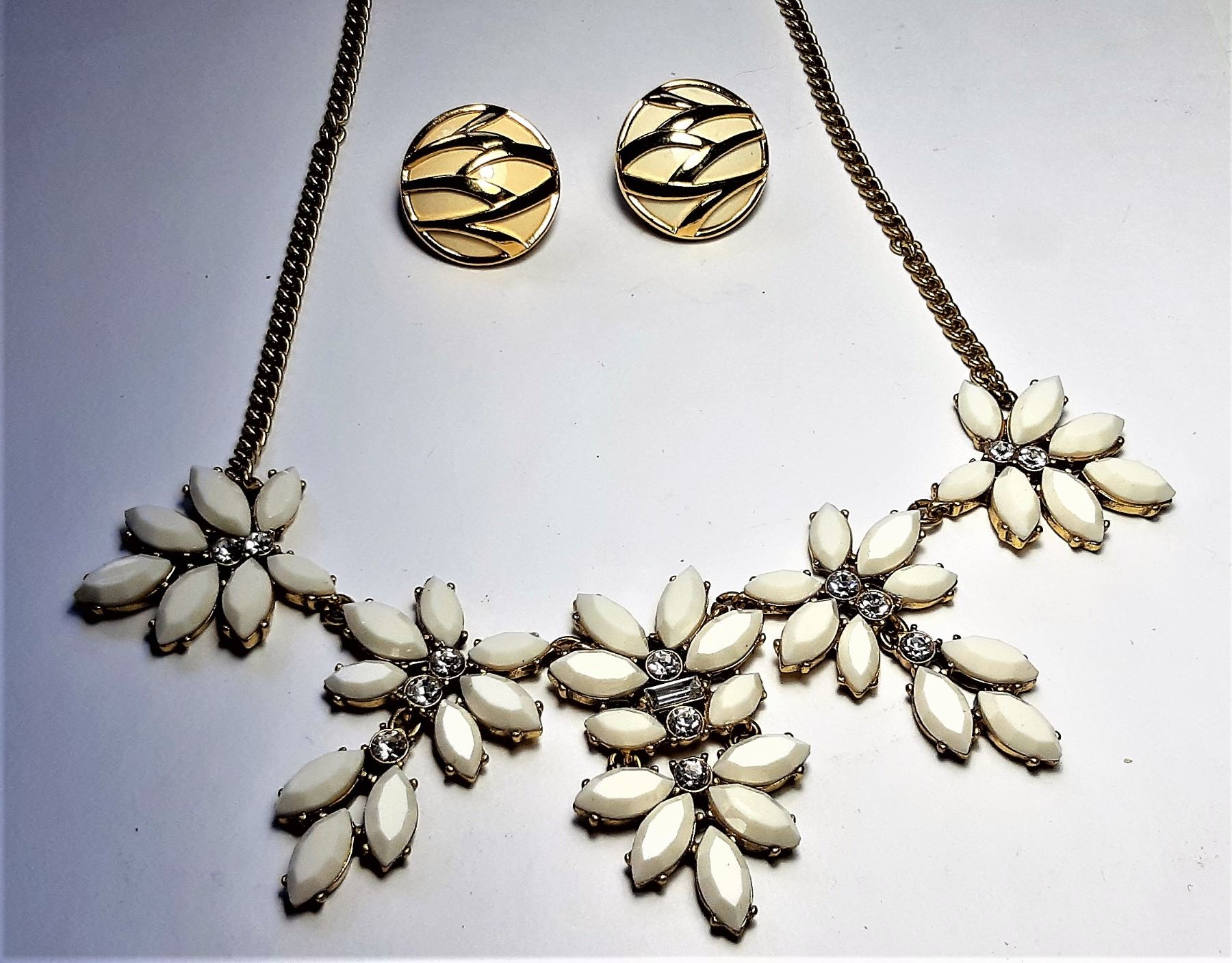 COLORED STONES WITH CLEAR CRYSTAL ACCENTS AND COORDINATING CLIP ON EARRINGS. JEWELRY