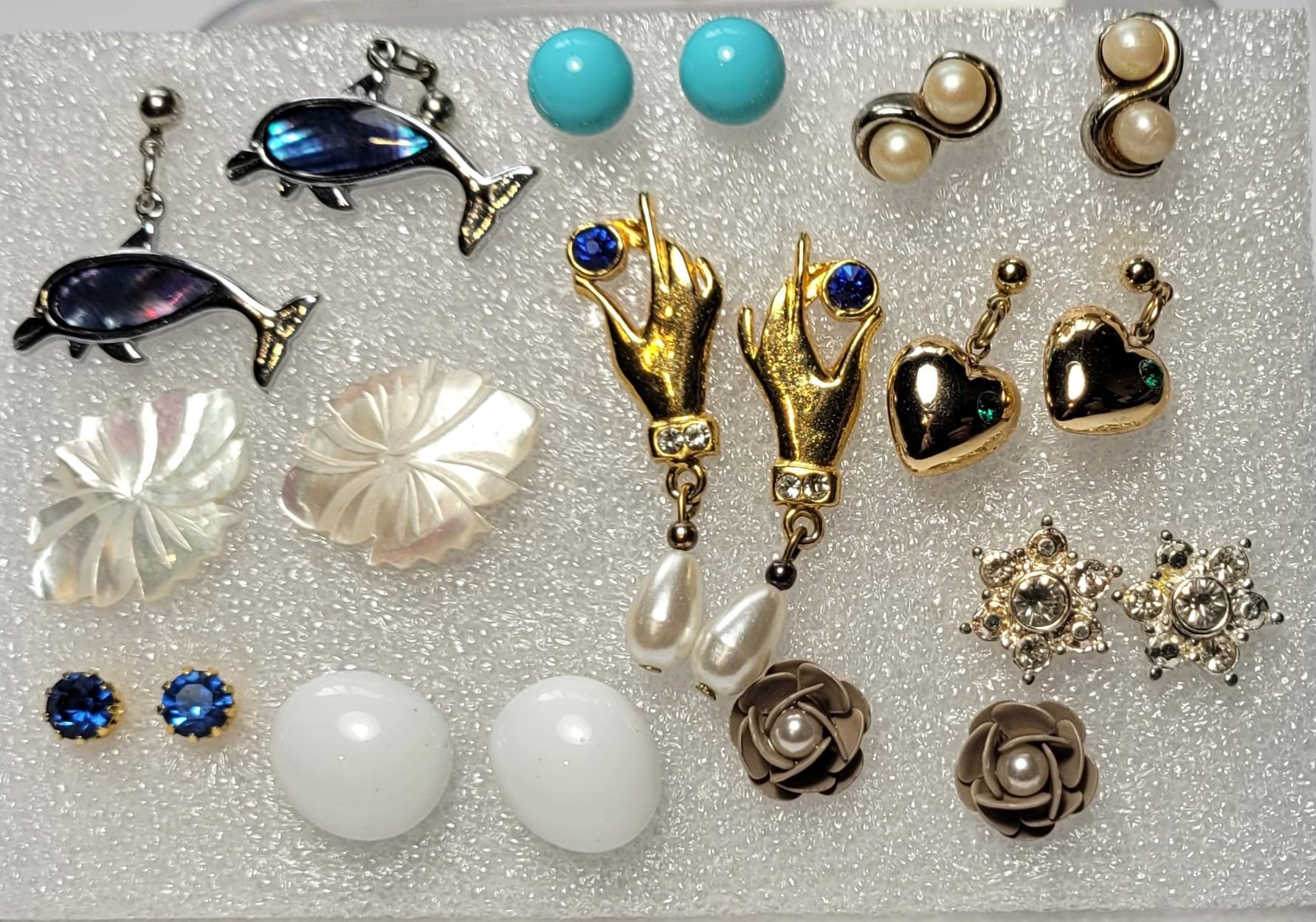 19) LOT OF 10 STUD EARRINGS, MOTHER OF PEARL, PEA
