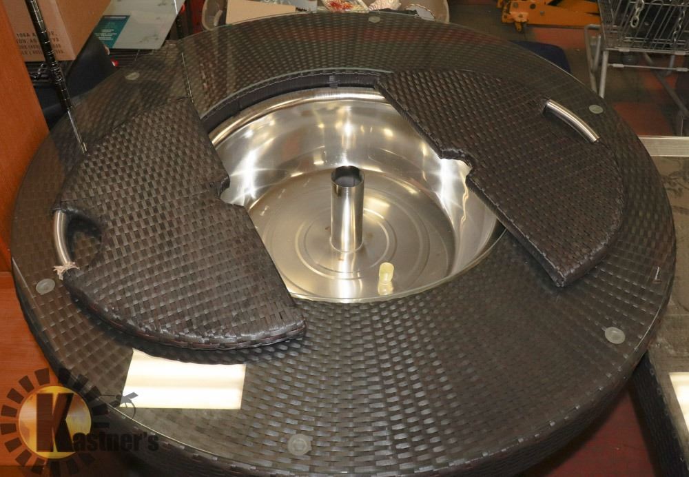 19) RATTAN STYLE ICE BUCKET BAR TABLE.