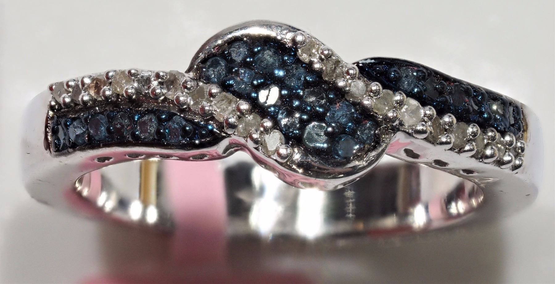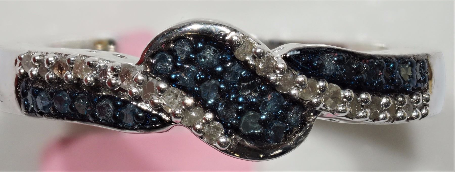 19-NT58- STERLING SILVER BLUE AND WHITE DIAMOND (0.44CT) RING SIZE 6.5 W/COA. SUGGESTED REPLACEMENT VALUE $1056.00. JEWELLERY