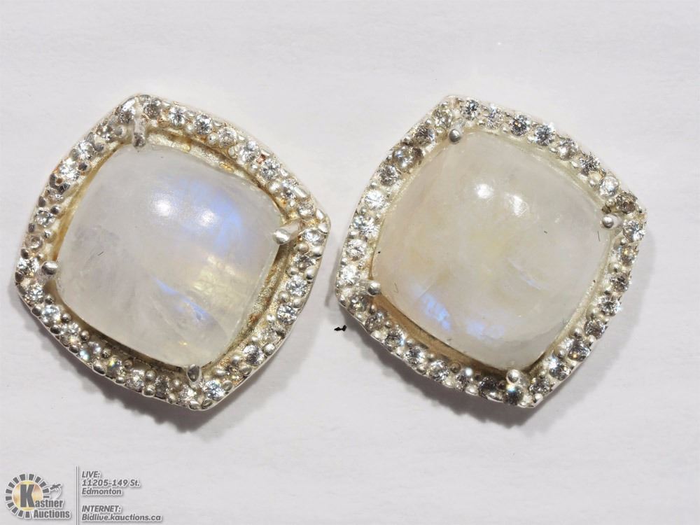 19 - GS15: STERLING SILVER MOONSTONE & CUBIC ZIRCONIA (APPROX. 3.94 G) STUD EARRINGS